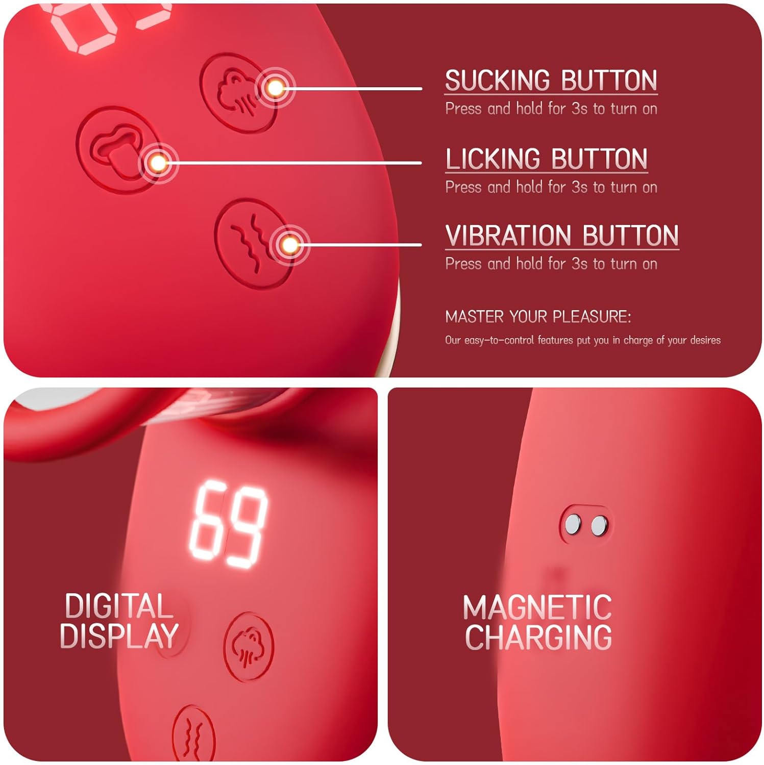 9 Deep Vibrations & 9 Tongue Licking Modes for Precise Clitoral Stimulation Â