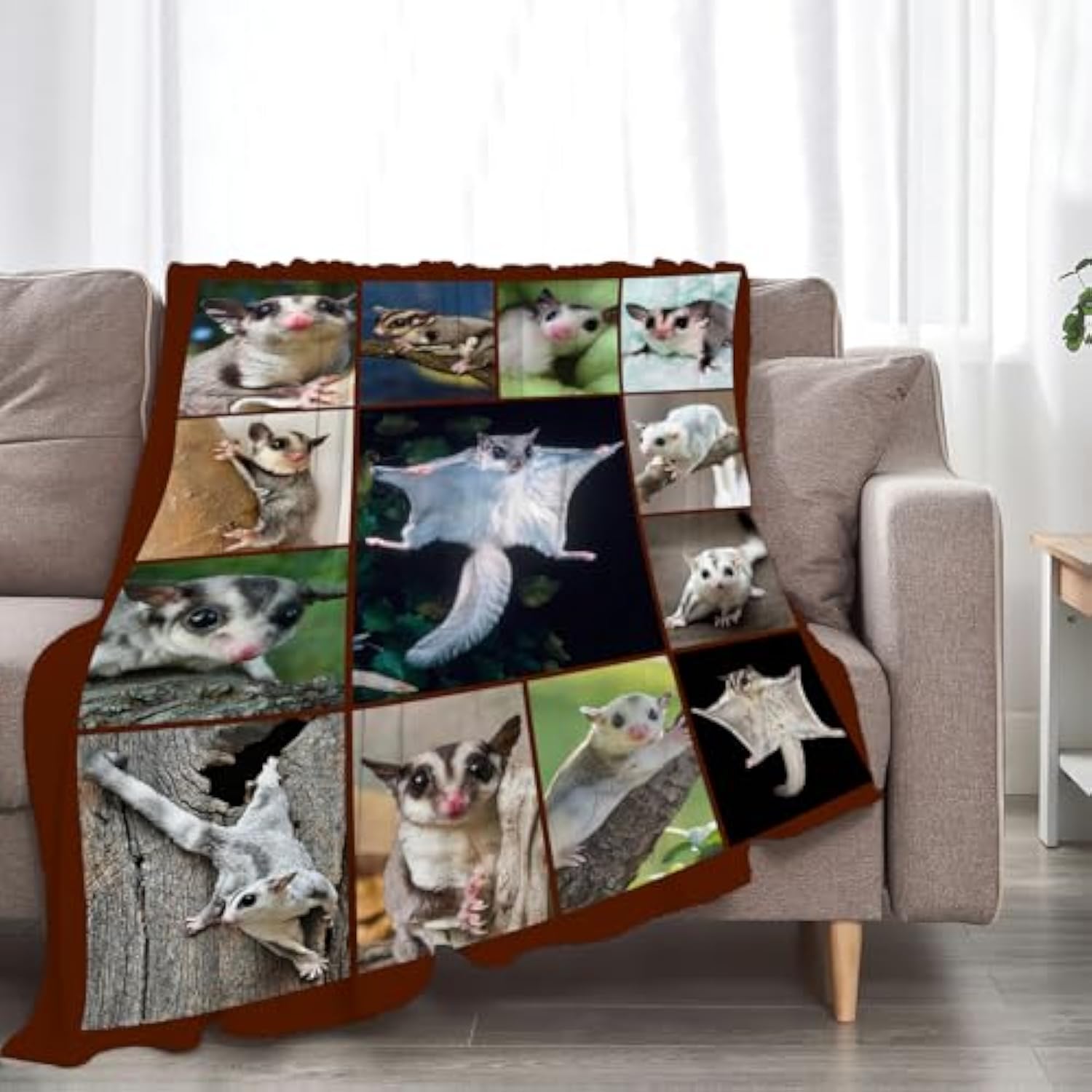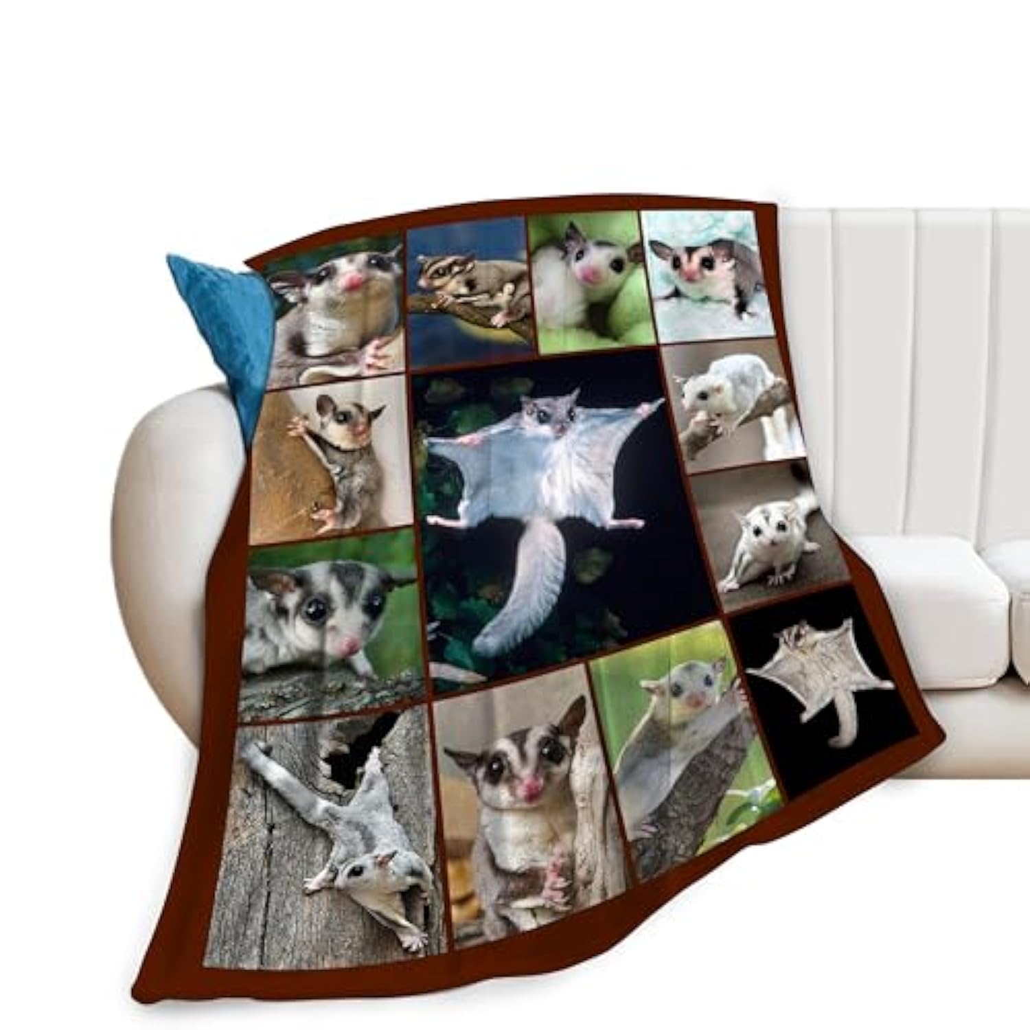 Sugar Glider Blanket Cute Weasel Animal Throw Blanket Soft Warm Cozy Fuzzy Plush Gifts For Girls Women Lightweight Fleece Flannel Stuff Decor Blankets For Kids Adults 50"X40"