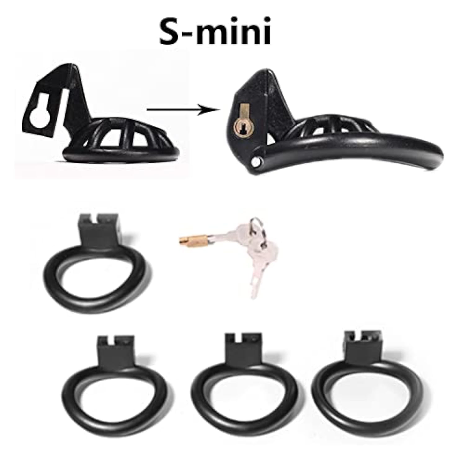 Super Small Penis Ring Sissy Chastity Cage,Locked In Male Chastity Device With 4 Base Ring (S-Mini, Black)
