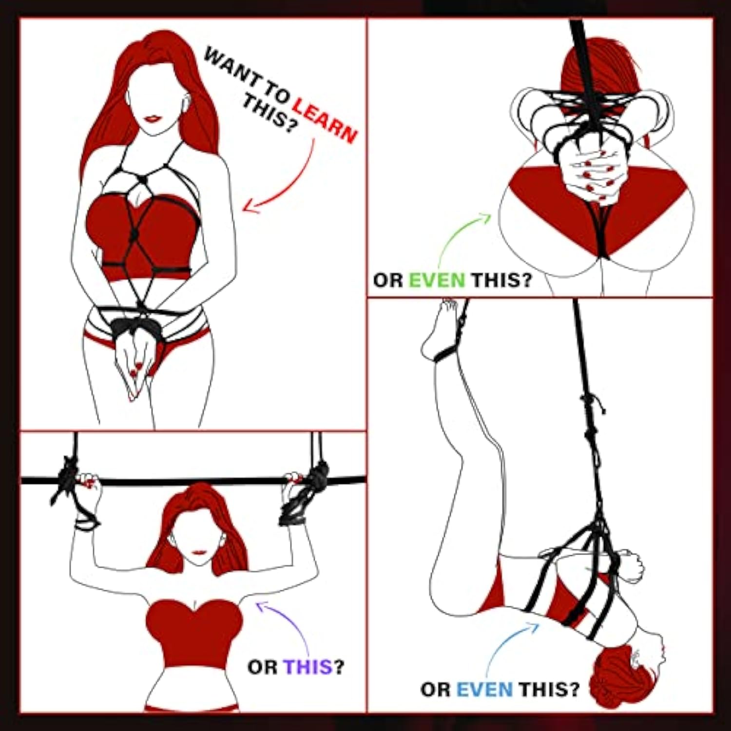 Super Soft Cotton-Rope Shibari Bondage / Restraint Kit, Bdsm Beginner Set, Adult Sex Toys For Women Men And Couples(Black+Red)