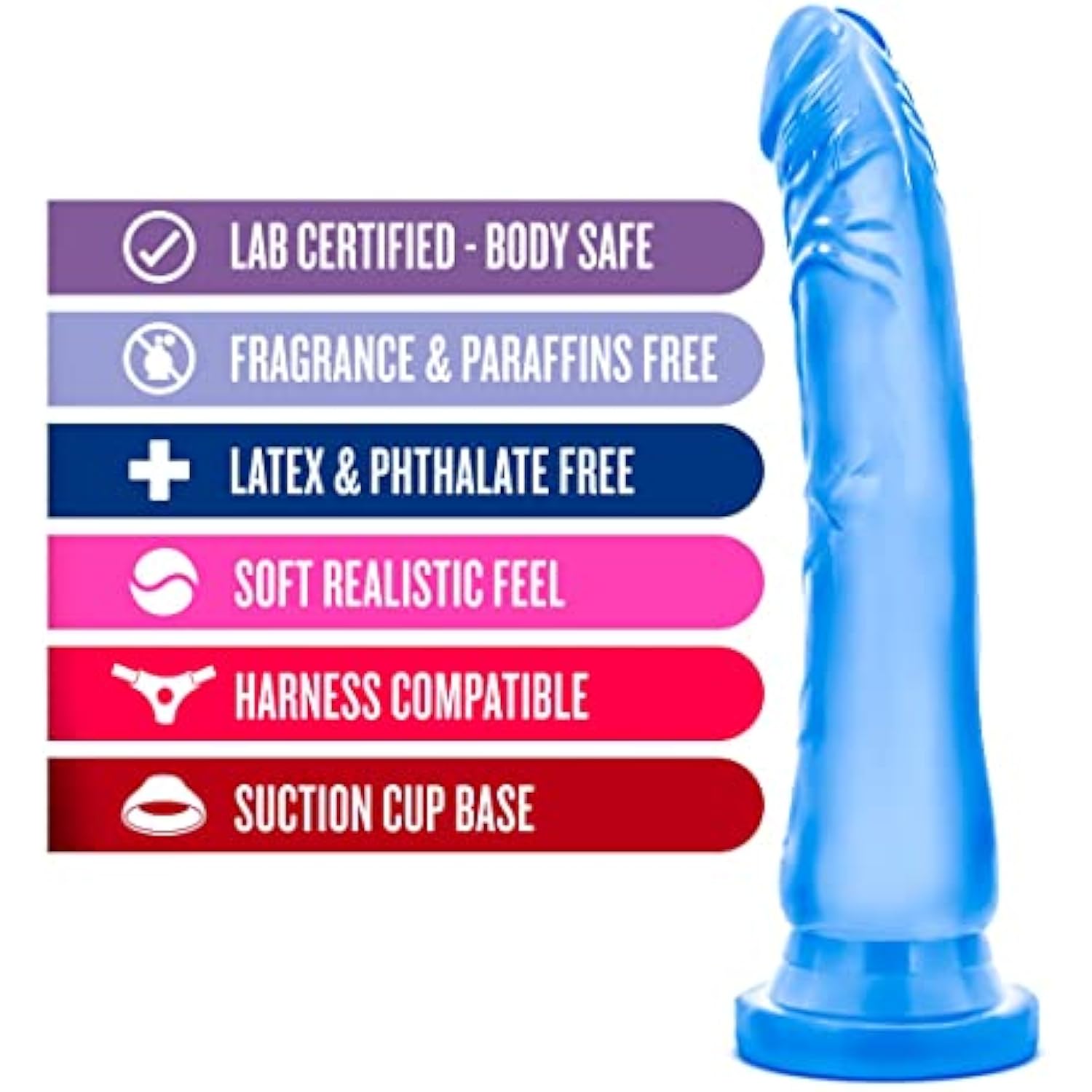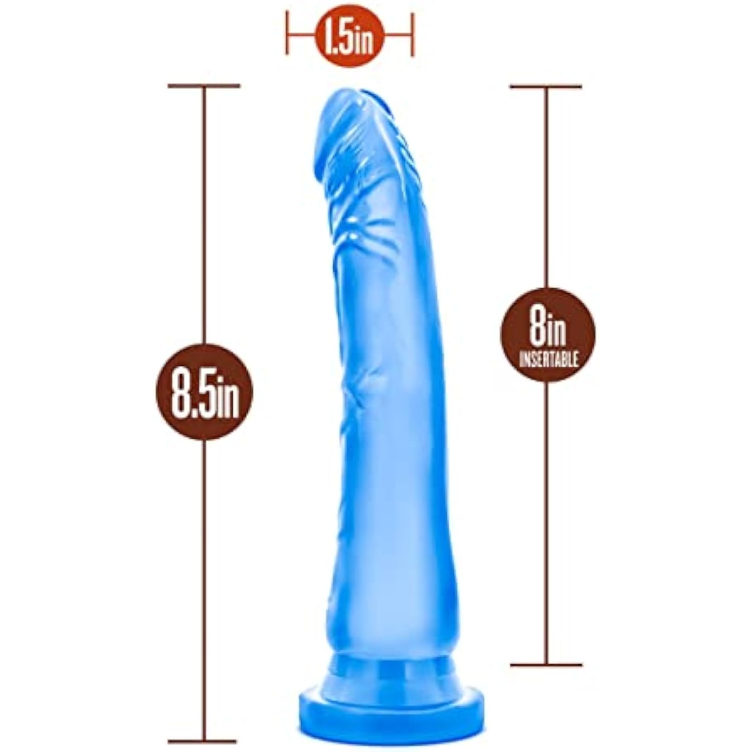 Sweet N Hard 6 - Realistic 8.5 Inch Long Dildo - 2" Thick - Sturdy Strapon Compatible Suction Cup For Hands Free Play - Body Safe - Soft Lifelike Adult For Couples - Clear Blue