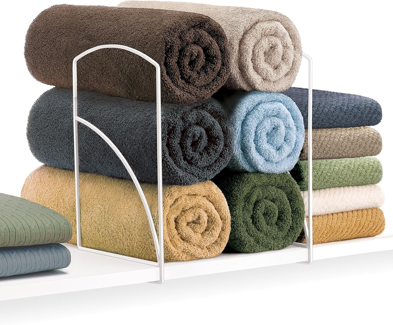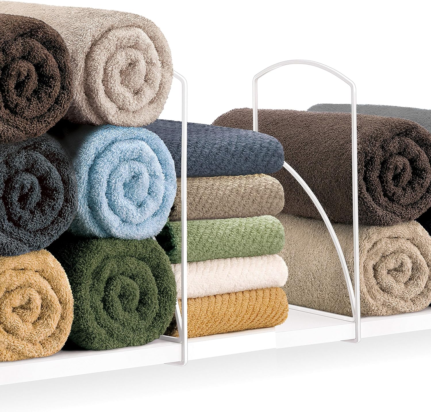Tall White Shelf Dividers - Linen Closet Organizers and Storage - Linen Storage - Closet Organization - Towel Organizer for Closet (Set of 2)