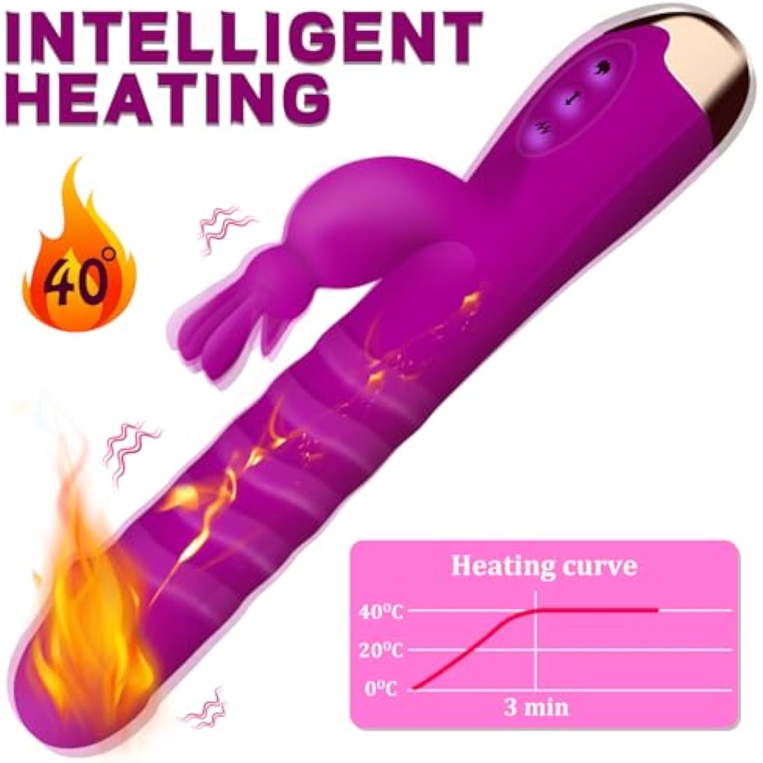 Telescopic Heating Tongue Licking Vibrators, Thrusting G Spot Rabbit Vibrator, 10 Tongue Licking Vibration Modes & 3 Stretching Modes, Adult Sex Toys For Women (Purple)