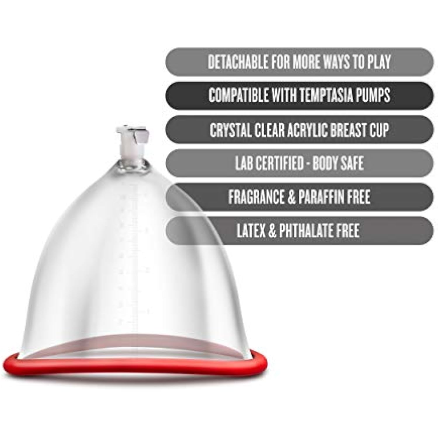 - Versatile Play Options – Experience Ultimate Versatility With A Detachable Design. This Breast Pump Cup Can Be Mixed And Matched With Other Temptasia Pumps And Accessories, Offering You Countless Ways To Play And Explore Your Pleasure.