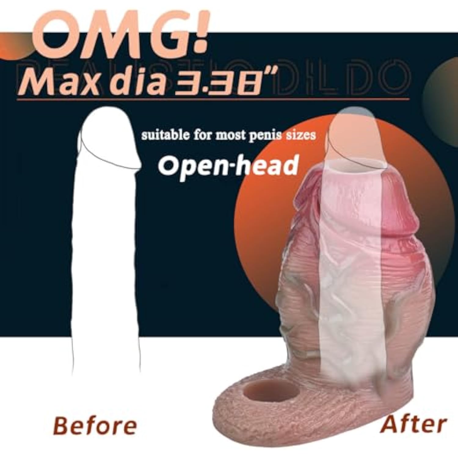 Thick Male Sex Toys Penis Enlarge Sleeve Dildo Sheath, Silicone Glans Exposed Men Couples Intimacy Dildo Cuff, Adult Penis Cover With Cock Ring
