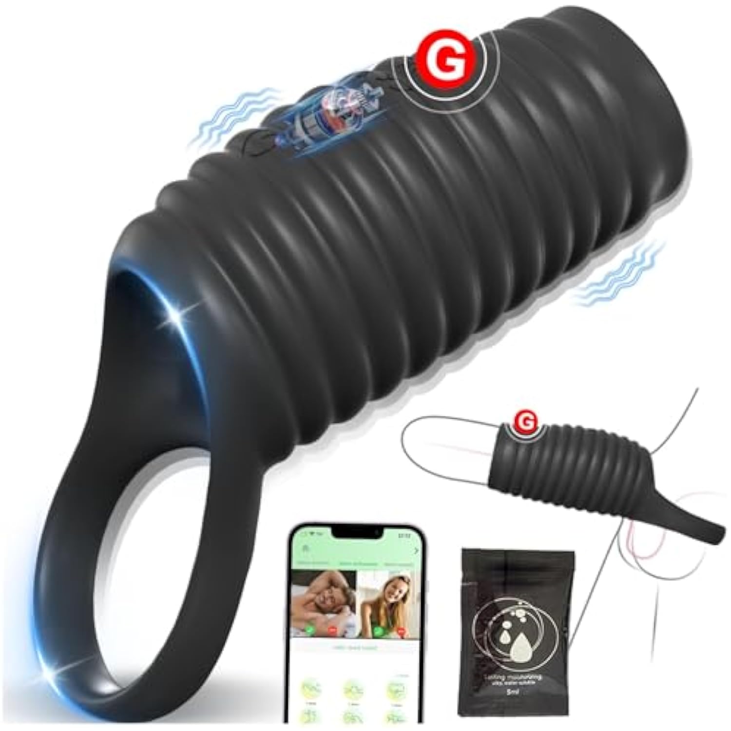 Threaded Full Liquid Silicone Soft Vibrating Penis Sleeve Cock Ring, App Pleasure Penis Ring Extender Vibrator Couples Adult Sex Toys For Men Women, Male Couple Sex Toy Game For Men