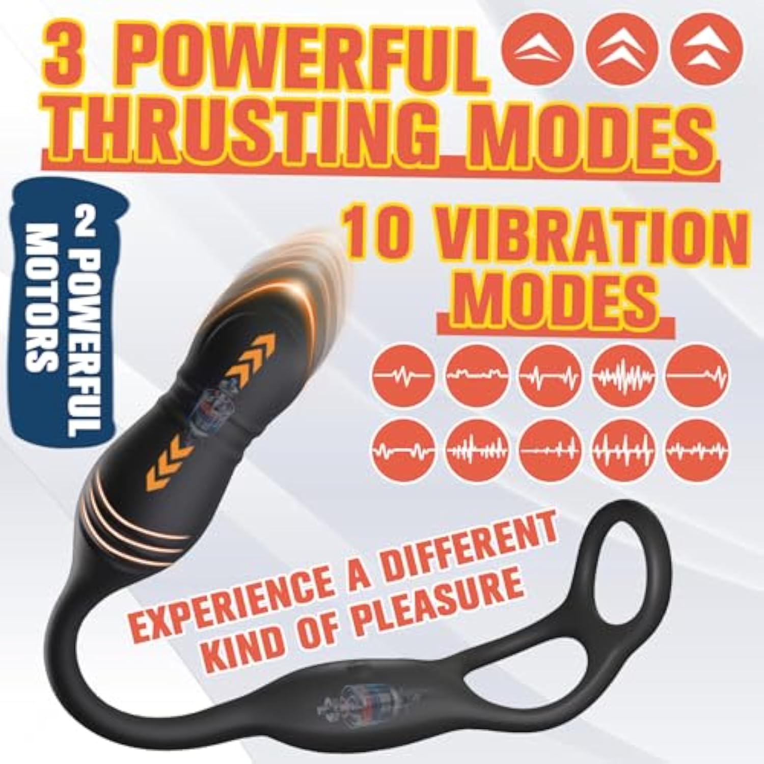 Thrusting Anal Prostate Massager, Sex Toy With Dual Cock Ring, Remote Control Vibrator With 3 Thrusting & 10Vibrating Modes?Anal Plug G Spot Vibrator Adult Toys For Men Couples