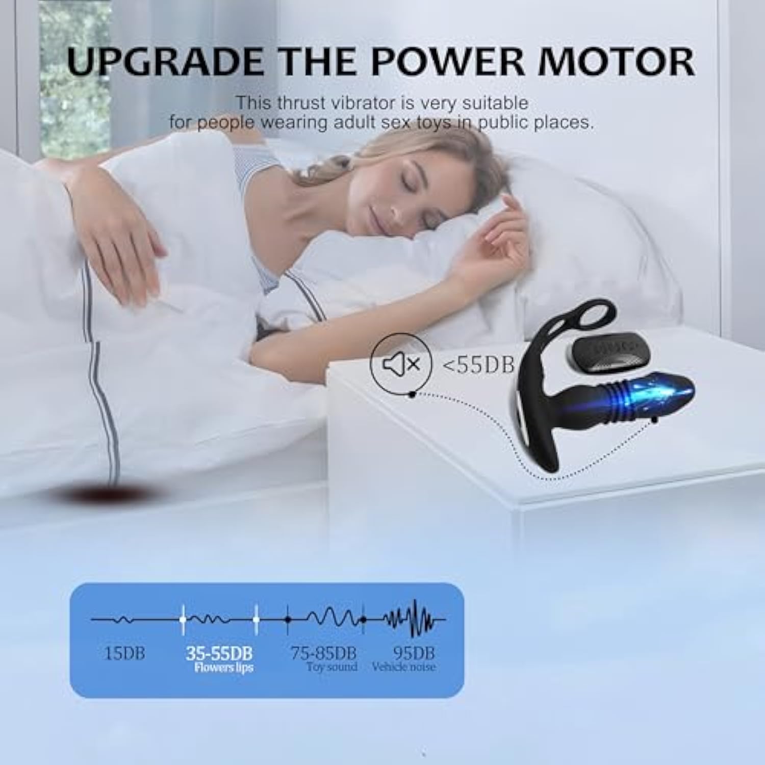 Thrusting Anal Toy With Prostate Massager, Vibrating Anal Vibrator Butt Plug With Dual Soft Adjustable Penis Ring With 7 Powerful Vibration Modes, Male Sex Toys For Gay Men Couple Pleasure