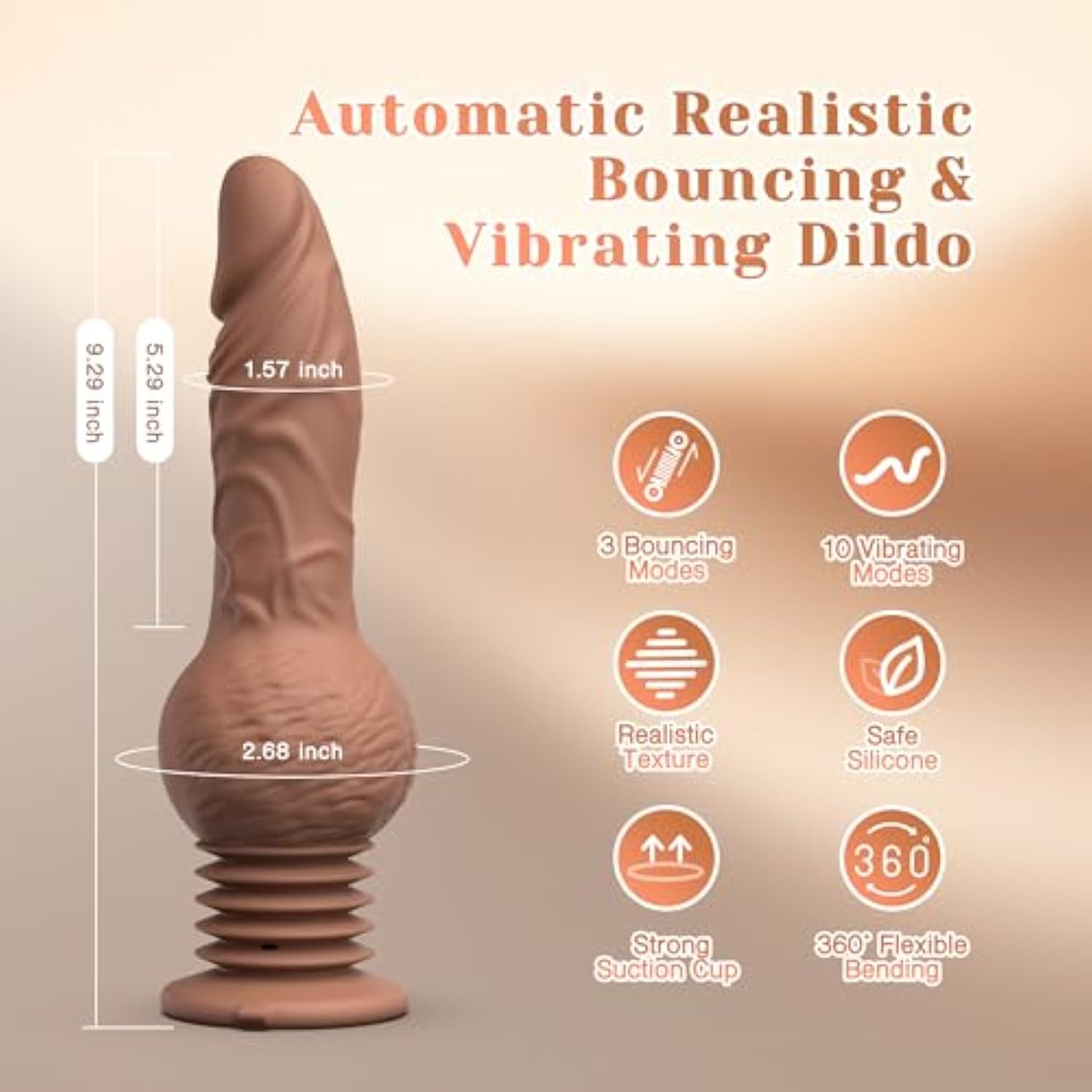 Thrusting Dildo Vibrator - 9.29" Realistic Silicone Dildos For G Spot Anal Stimulation With 10 Vibrating & 3 Bouncing Modes, Adult Toys Penis Sex Toys For Women Men Couples (Drillme)