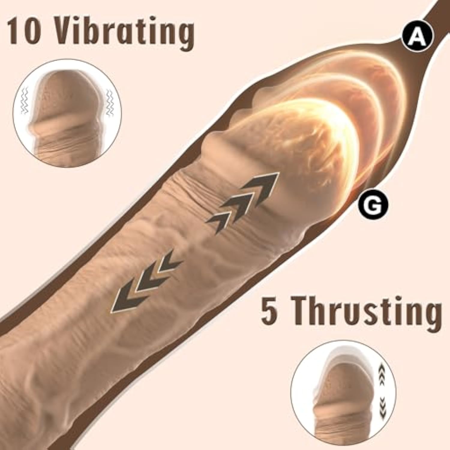 - 5 Thrust 10 Vibrate Dildo: With 5 Thrusting Functions And 10 Vibrating Frequencies, Both Functions Can Be Used At The Same Time, This Adult Toys For Women Offers A Variety Of Ways To Play, You Can Combine Them According To Your Preference, There Is Always One For You, Or You Can Just Use One Of The Functions