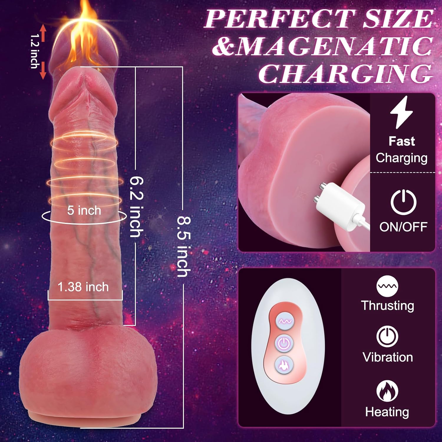 Enhanced Thrusting & Vibrating Dildo: Experience upgraded thrusting speeds with an advanced telescoping system that delivers ultra-fast thrusts, up to 600 strokes per minute. This feature ensures an unmatched experience designed to enhance pleasure with intense sensations.