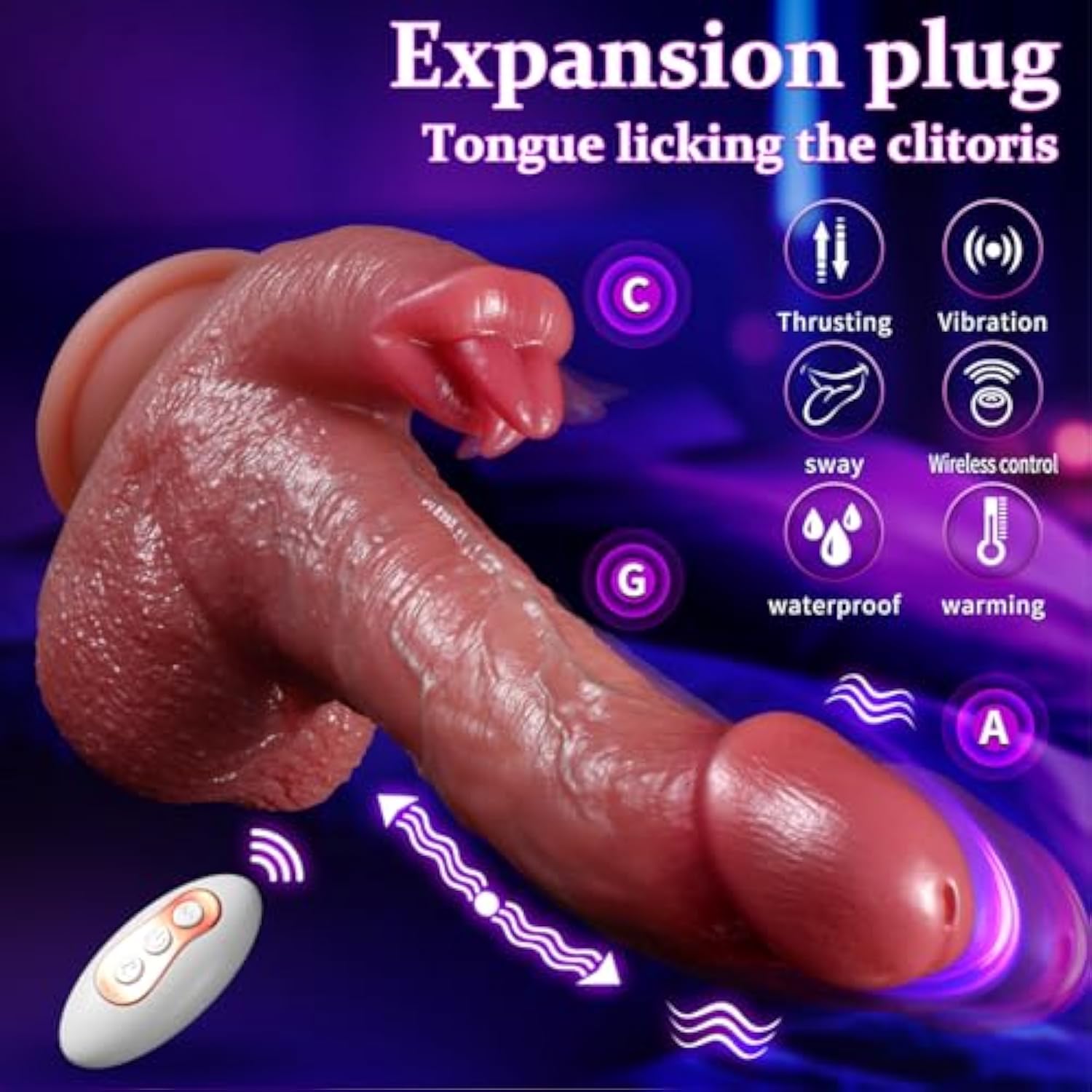 - ?Multi-Functional Stimulating Adult Toys?-This Thrust Dildo Has 7 Vibrations, 7 Thrust Combinations And Licking Modes, The Thrust Mode Can Extend The Length Of The Penis, Penetrate Deep Into The Vagina, Explore And Hit Your Sensitive Points, The Vibration Mode Can Stimulate The Vagina, Anus, Prostate Or Other Erogenous Areas At High Frequency, The Unique Soft Mini Tongue Can Stimulate The Clitoris, Giving You A Double Real Sexual Feeling, Exploring More Possibilities, And Orgasm Becomes Easier. Meanwhile, The Dildo Heats Up To 107°F After 107-107 Minutes To Provide Warmth Flush With The Body For The Most Realistic Experience.