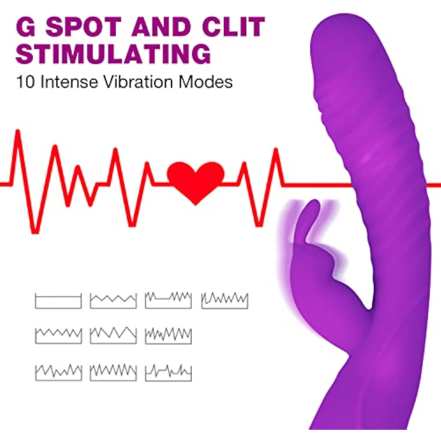 Thrusting Rabbit Vibrator G Spot Vibrator With Independent Clitoral Stimulator,10 Vibration Modes, Waterproof & Rechargeable Vibrator Dildo For Women Sex Toys For Couples, Rose