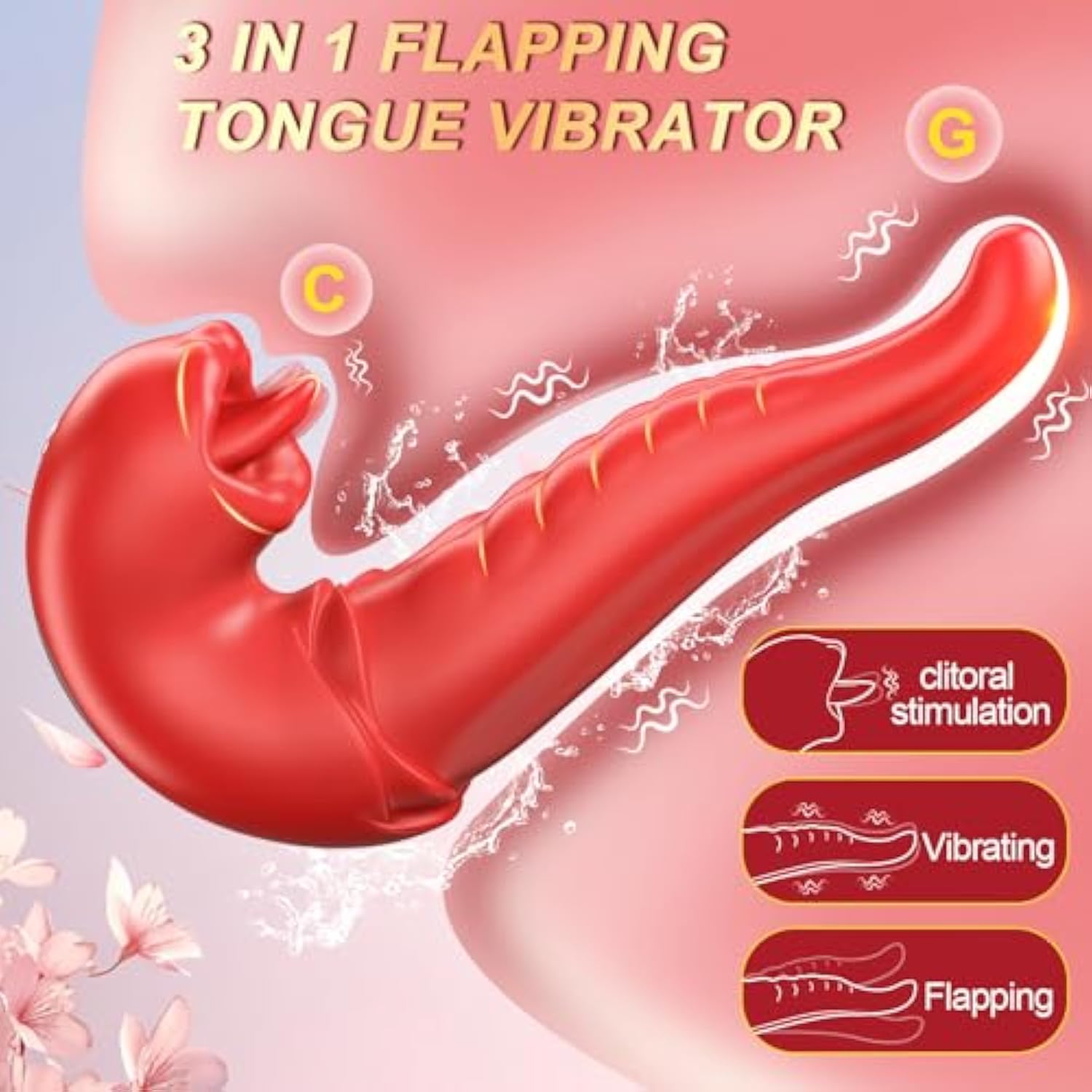 Tongue Vibrator Women Sex Toys -App 3 In 1 Tongue Toy For Women Rose Sex Toys G Spot Vibrator Tongue Dildo With 10 Flapping 10 Vibrating Mode, Mouth Clitoral Stimulator Pleasure Tool Couple Adult Toys