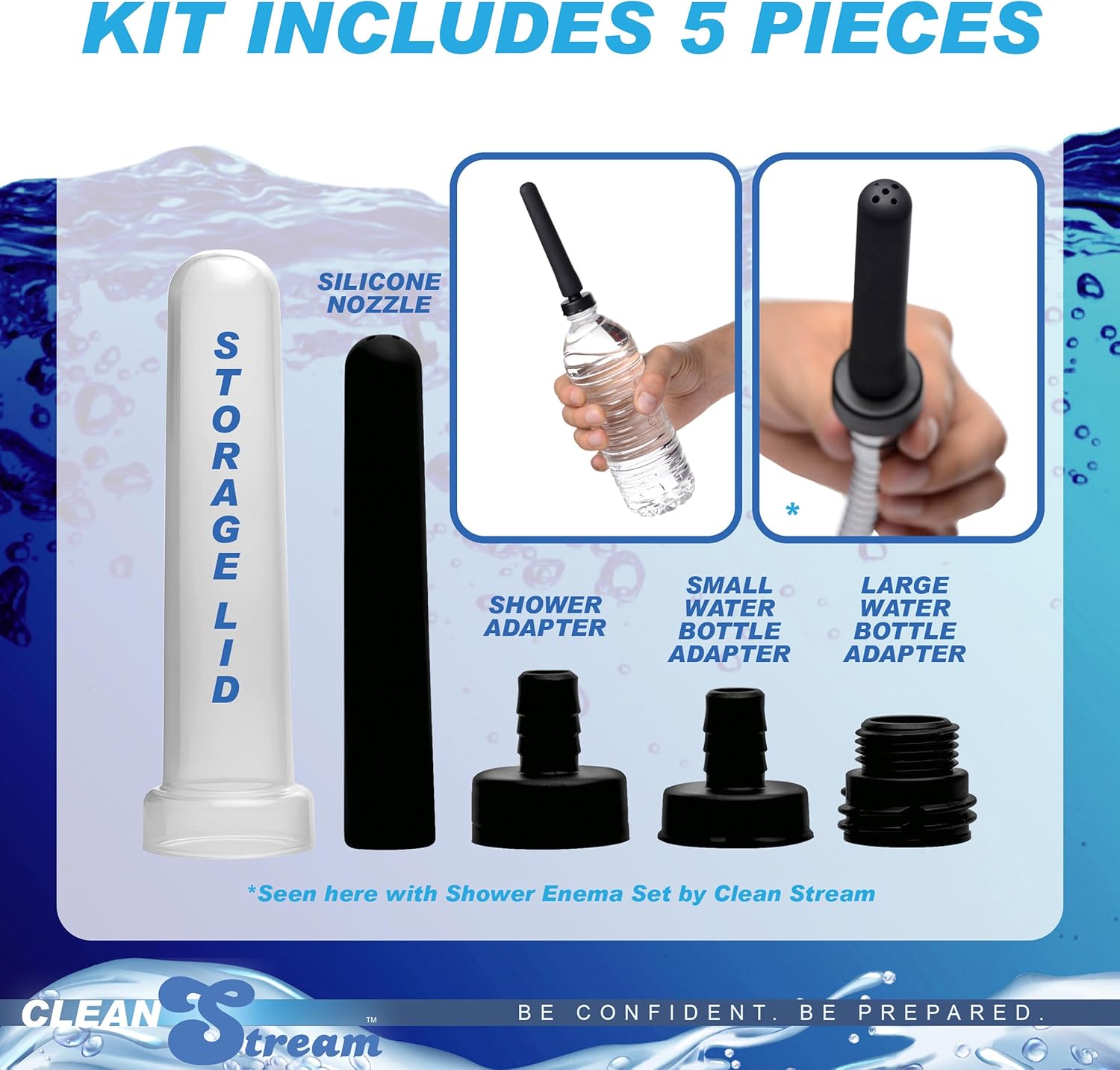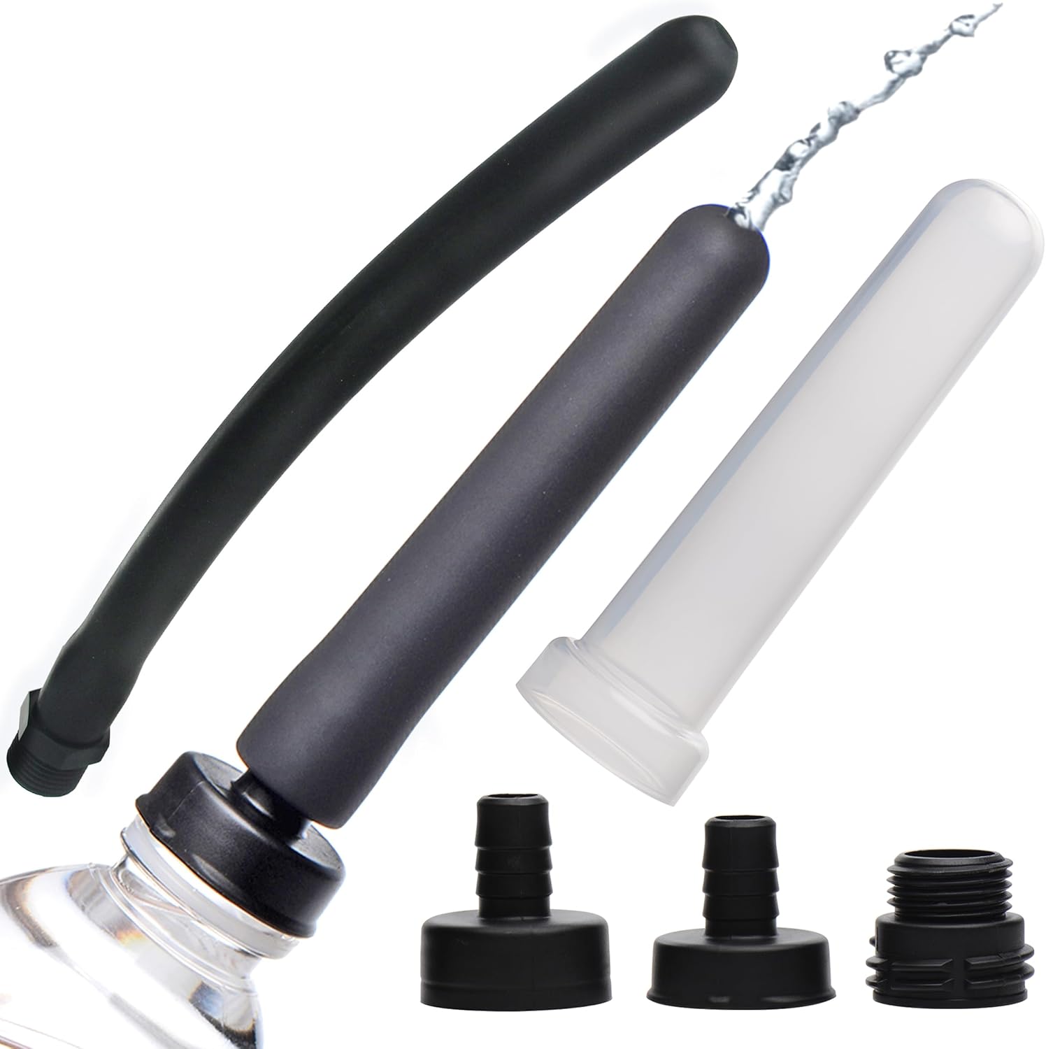 Travel Enema Kit with 4 Adapters, Fits Most Hoses & Bottles, 7-Piece Set (Black)
