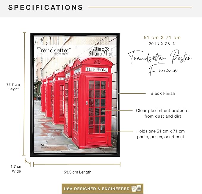 Trendsetter 20x28 Poster Frame Black High-Gloss, Vertical & Horizontal Wall Hanging Large Picture Frame for Photos, Posters & Art Prints (1-Pack)