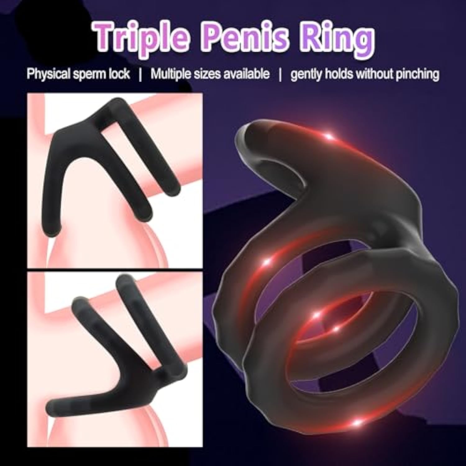 - Longer, Harder, Stronger: The Triple Penis Ring Features A Triple-Ring Design That Gently Holds Your Dick And Balls Without Pinching, Helps Enhance Erections And Pleasure.