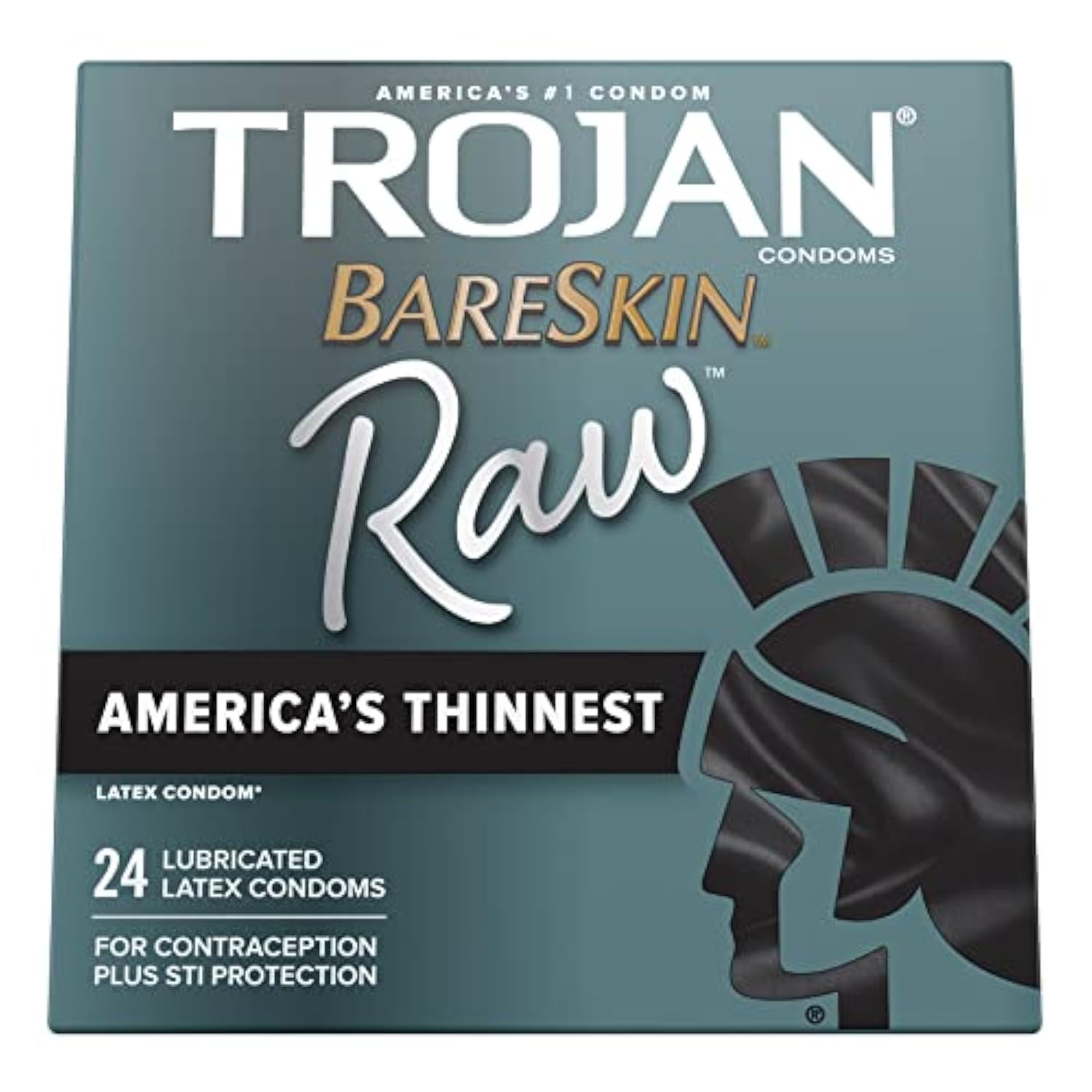 | Product 1: One 24 count box of TROJAN BareSkin Raw Thin Condoms are America's thinnest latex condoms, so you can feel as if nothing is there without compromising on protection and safety when you use these lubricated condoms | | Product 1: These TROJAN BareSkin Condoms are America's thinnest latex condoms, designed to help you enjoy a more natural experience and feel it all | | Product 1: Low-odor latex condoms that feature a silky-smooth lubricant to help provide heightened sensitivity and comfort every time you play and allow you to feel as if nothing is there without compromising on protection and safety | | Product 1: These lubricated condoms for men are made from premium latex and electroni