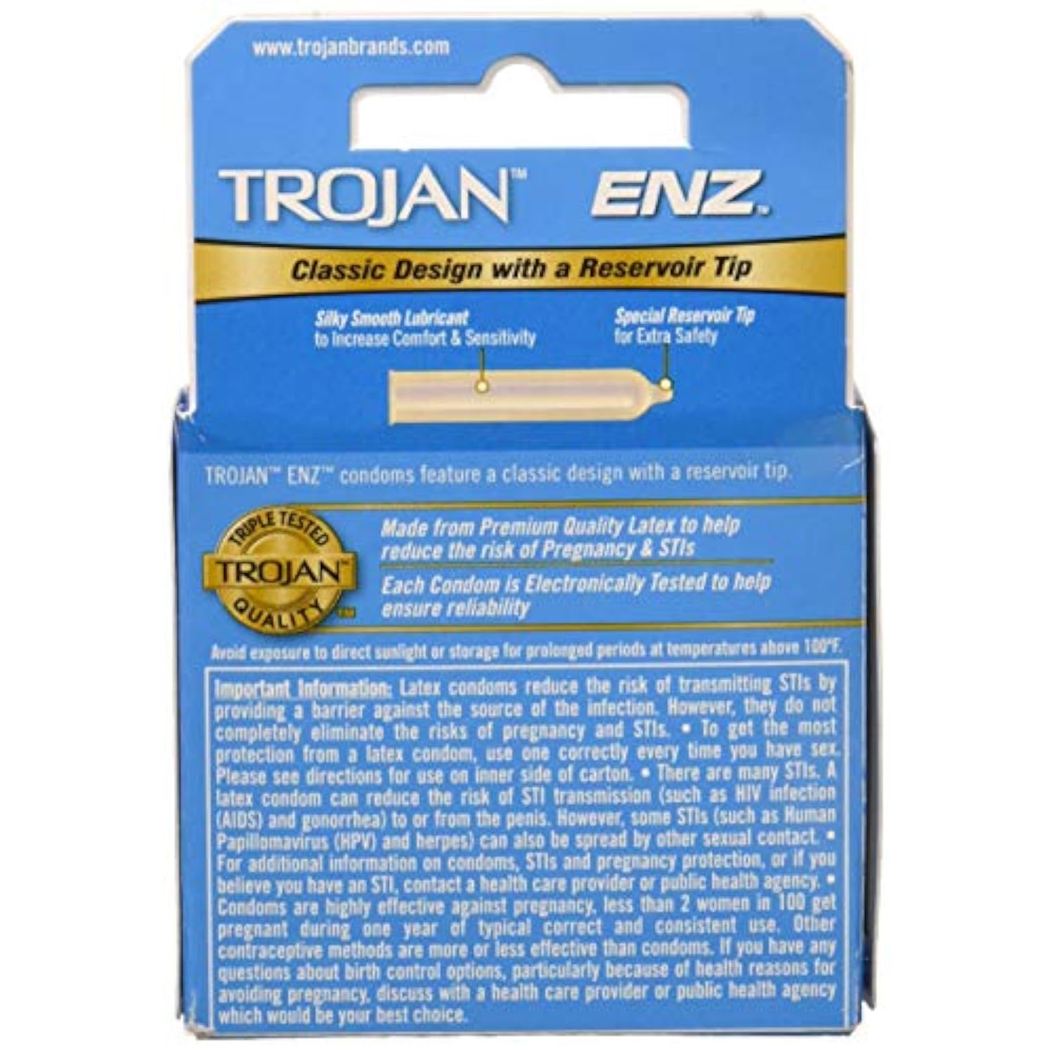 | Latex | | Made from premium quality latex to help reduce the risk | | Contains a silky-smooth, premium lubricant for comfort and sensitivity | | Features a classic design with a special reservoir tip that provides extra safety | | Electroni