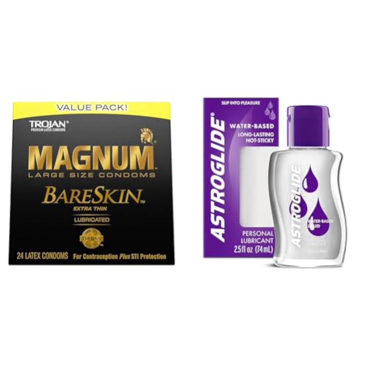 TROJAN Magnum BareSkin Premium Large Condoms, Comfortable and Smooth Lubricated Condoms for Men & Astroglide Liquid Personal Lubricant (2.5oz), Water Based Lube, Dr. Recommended Brand, Long Lasting