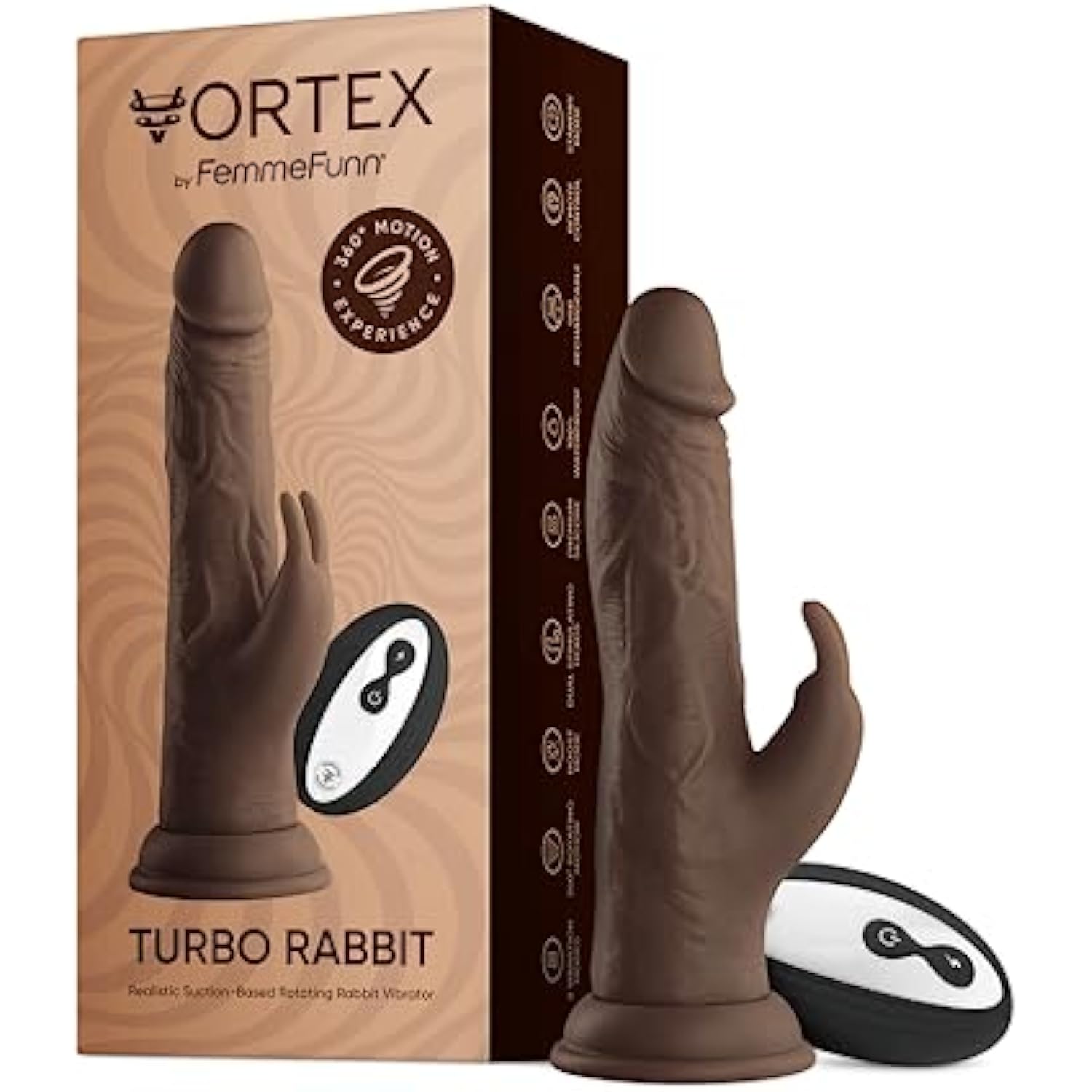 Turbo Rabbit Vibrator Realistic Dildo - Suction 360° Rotating Lifelike Sex Toy - Waterproof, 8 Vibration Modes, Turbo Button, Remote - Harness Compatible Adult Sex Toys For Women (Brown)