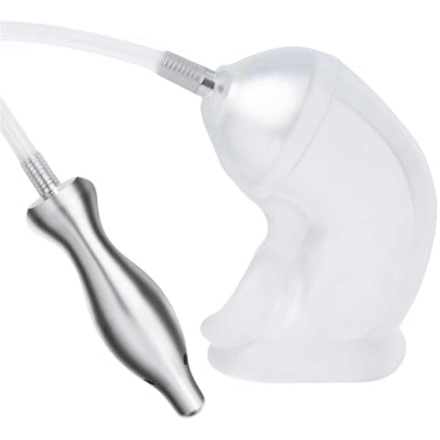 Two-In-One Metal Hollow Anal Plug With Holes Penis Restraint Sleeve, Transparent Soft Chastity Cage Sm Male Masturbation Device Adult Sex Toy