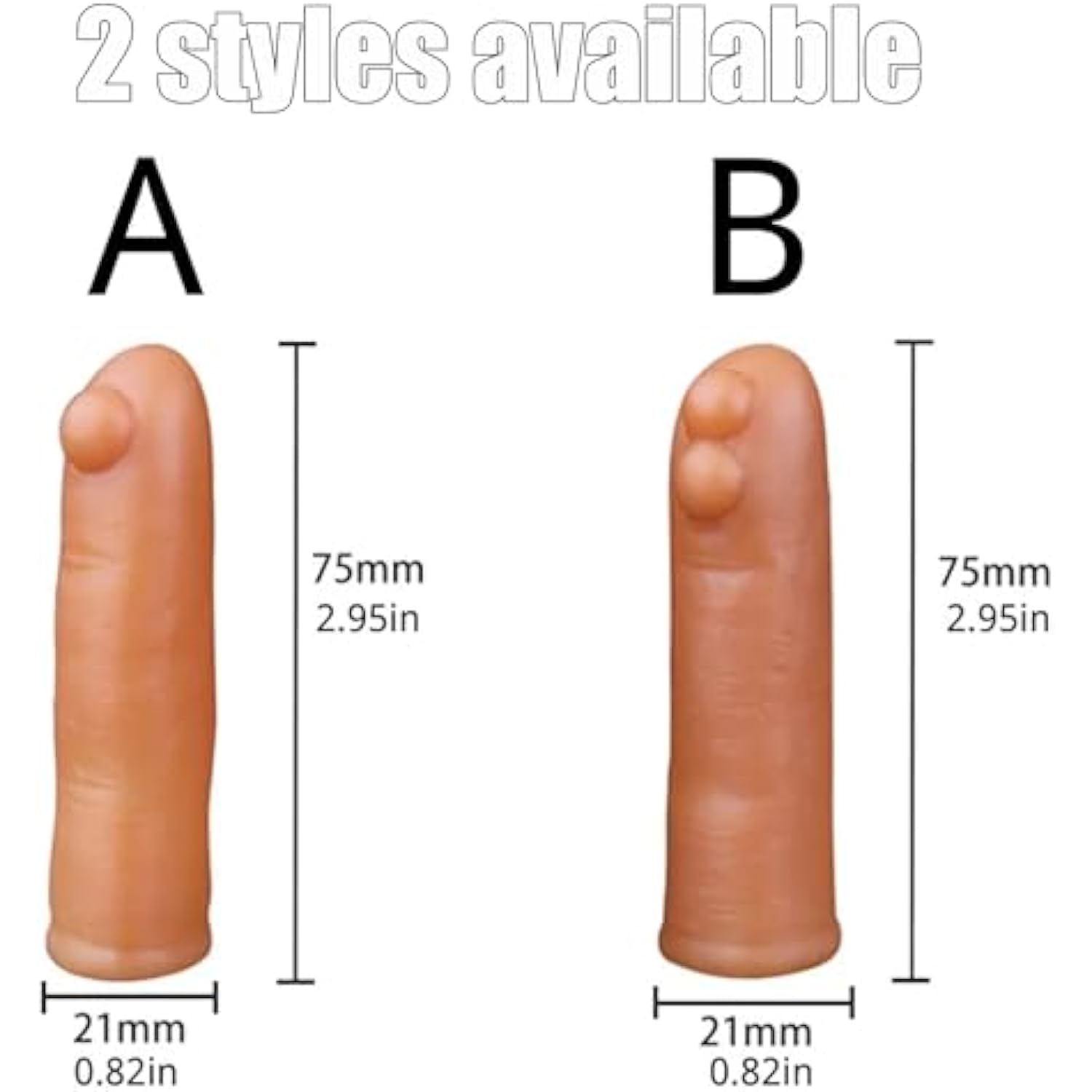 - [2 Styles Available] Finger Cot Sex Toys Are Available With Single Or Double Bumps, Both In Size 75*21Mm (2.95*0.82Inch). You Can Choose The Appropriate Finger Cot According To Your Preference.