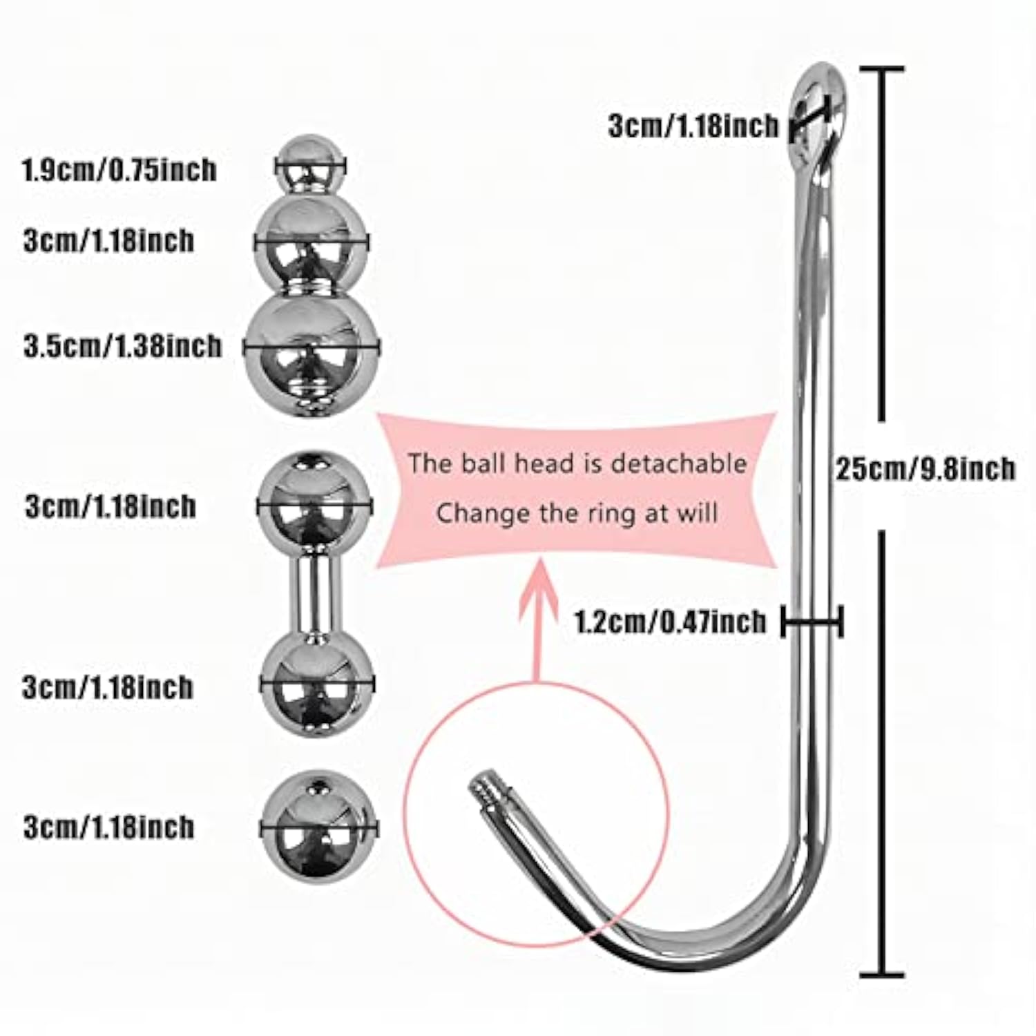 | Length: 25Cm/9.85Inch, Ball Diameter: 1.9Cm-3.5Cm/0.75Inch-1.38Inch, The Maximum Diameter Of The Ball Is 3.5/1.38Inch. Package: 1X25Cm/9.85Inch Hook, 1X3Cm/1.18Inch Single Ball Head, 1X3Cm/1.18Inch Double Ball Head, 1X Triple Ball Head 1.9Cm-3.5Cm/0.75Inch-1.38Inch, Three Ball Heads Of Different Specifications Are Free To Play , To Meet The Needs Of More People. | | Recommended Way To Play: Lubricate The Anal Hook Fully And Stuff It Into The Chrysanthemum, Connect The Top Ring Of The Anal Hook With The Neck With A Rope Or A Mouth Ball, You Will Find That Your Partner Can No Longer Bow His Head, If You Lower Your Head, It Will Affect The Chrysanthemum Until You Moan, Very Stimulate. | | Unlock More New Ways To Play, O-Rings Provide More Possibilities For Exploring Ways Of Sex. The Curved Curvature Allows The Anal Hook To Be Easily Inserted Into The Anus To Fully Stimulate The Muscles Of The Inner Wall Of The Anus. | | Comfortable To Use, Suitable For Beginners And Enthusiasts, Leaving Unlimited Imagination For Players To Experience Sex Games, This Is A Sex Toy Worthy Of Sm Gamers. | | Pay Attention To Hygiene. Since The Product Is Waterproof, It Needs To Be Disinfected With Alcohol Before And After Use, And Washed With Clean Water. Do Not Use A Set Of Steel Hooks For Multiple People. | |