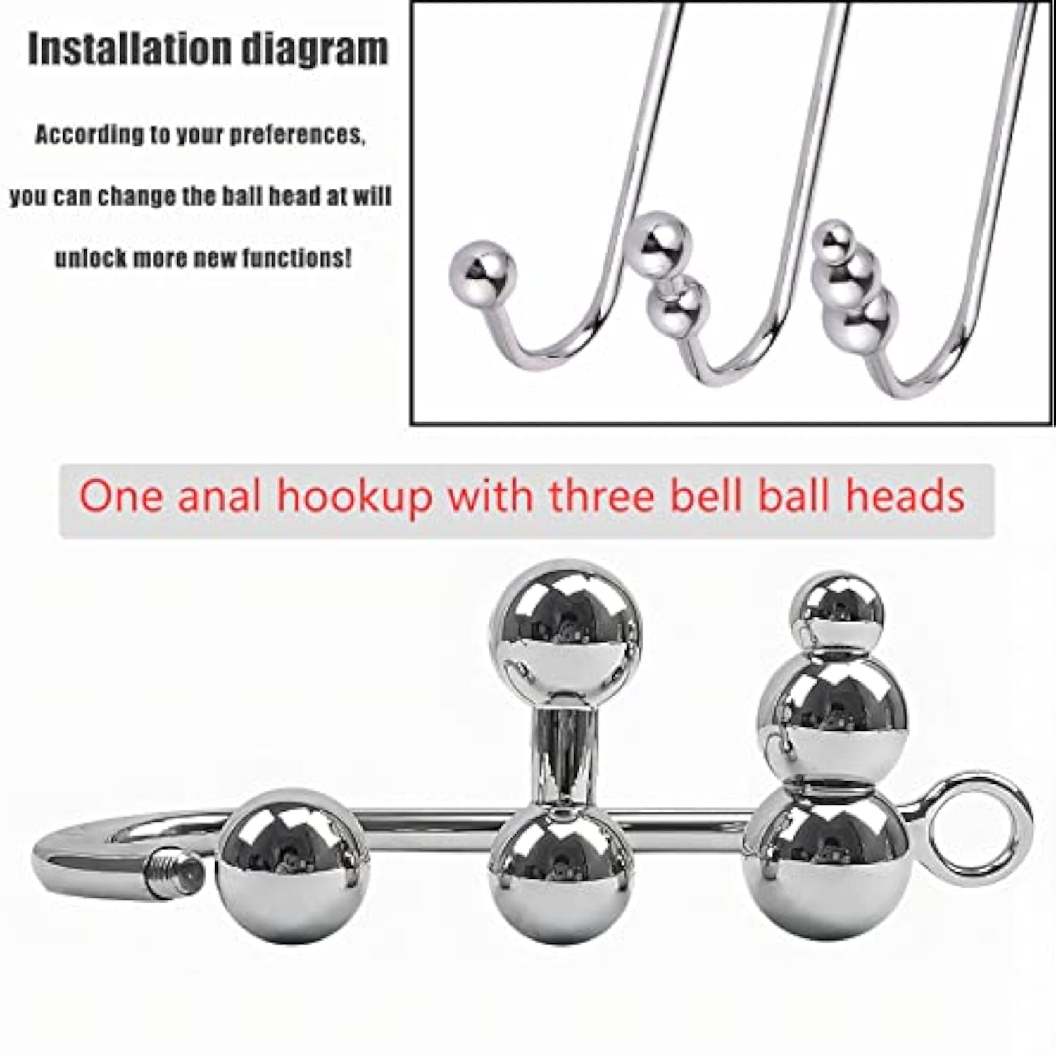 Unisex Rope Bondage Stainless Steel Metal Hanger Hook Whit 3 Balls Tip Butt Toy Plug