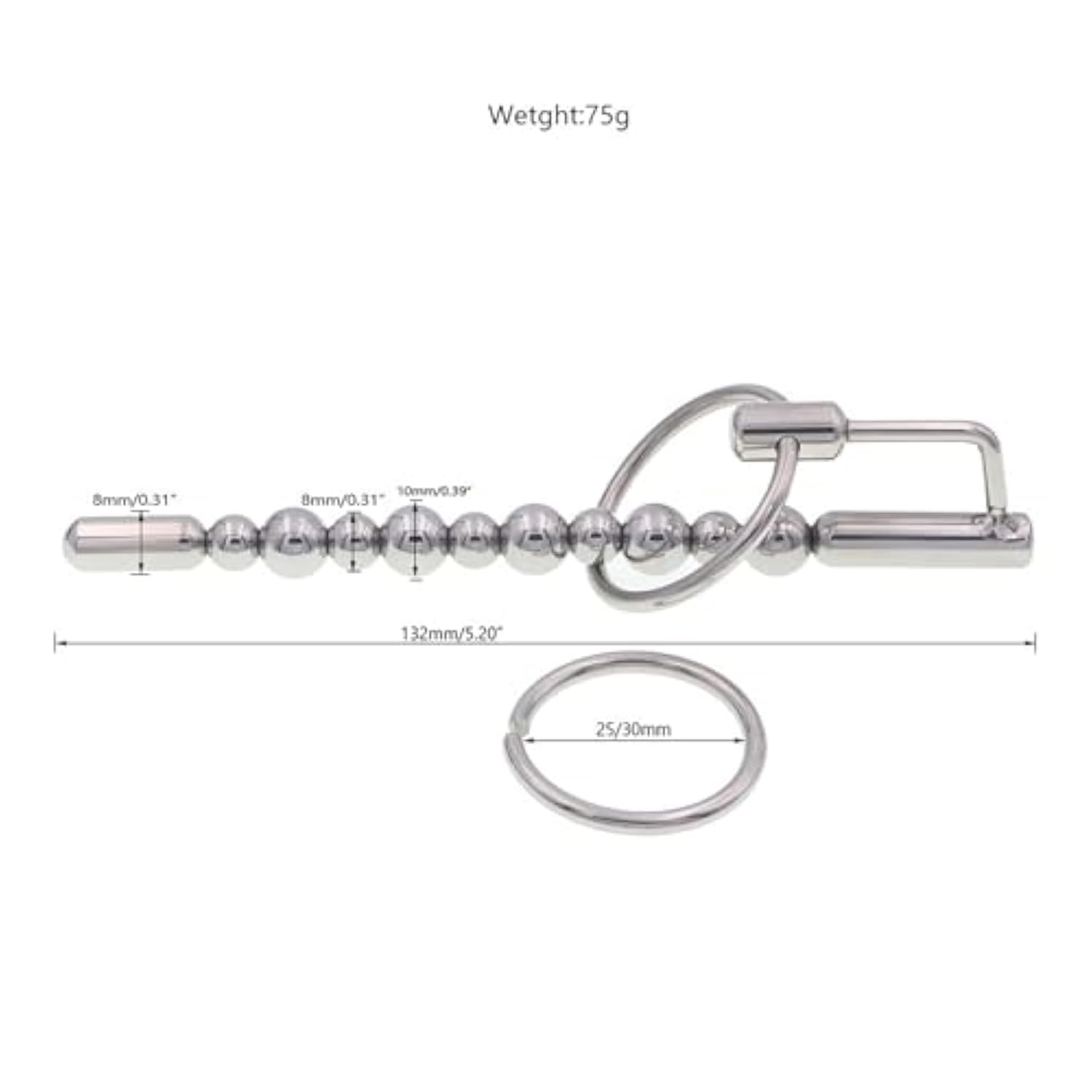 | 1.Urethra Dilator:This Urethral Sound Is Available In Electroshock And Regular Models, The Electric Shock Penis Sound Needs To Be Used On Its Own With A Universal Host And Cord, The Electroshock Model Can Also Be Used As A Regular Penis Plug. | | 2.Size:This Urethral Sound Comes With Two Penis Rings, 25Mm/0.98In And 30Mm/1.18In In Two Sizes To Meet Your Different Needs, Perfect For Male Masturbation Sex Toys. | | 3.Material:Made Of Selected High-Quality Stainless Steel, Smooth Surface,Exquisite Workmanship, High-Quality Urethral Stimulation Toys, Can Be Rinsed Directly With Water. | | 4.Unique Design: The Head Is Rounded For Ease Of Use, A Large And A Small Ball Design To Bring Stimulation To Your Urethral Play, And With The Penis Ring, It'S Not Easy To Fall Off During Use. | | 5.Our Penis Vibrator And Urethral Dilator Is Perfect For Urethral Masturbation. It Can Be Given To Your Loved One On Valentine'S Day, Holidays, Christmas, Thanksgiving, Honeymoon, Wedding Anniversary, Special Night And Other Important Holidays! | |