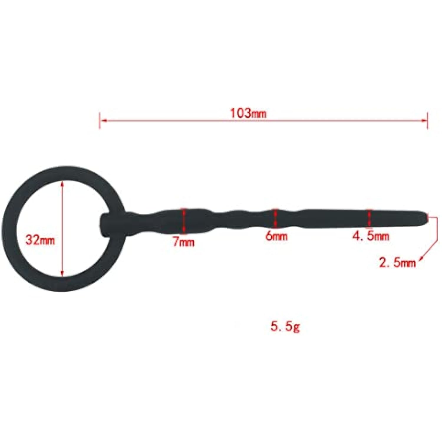 Urethral Probe Wand With Ring Silicone Chastity Holy Urethral Sound Beads Hollow Urethral Plug Probe Urinary Dilator Urethra Masturbation Rod (B)
