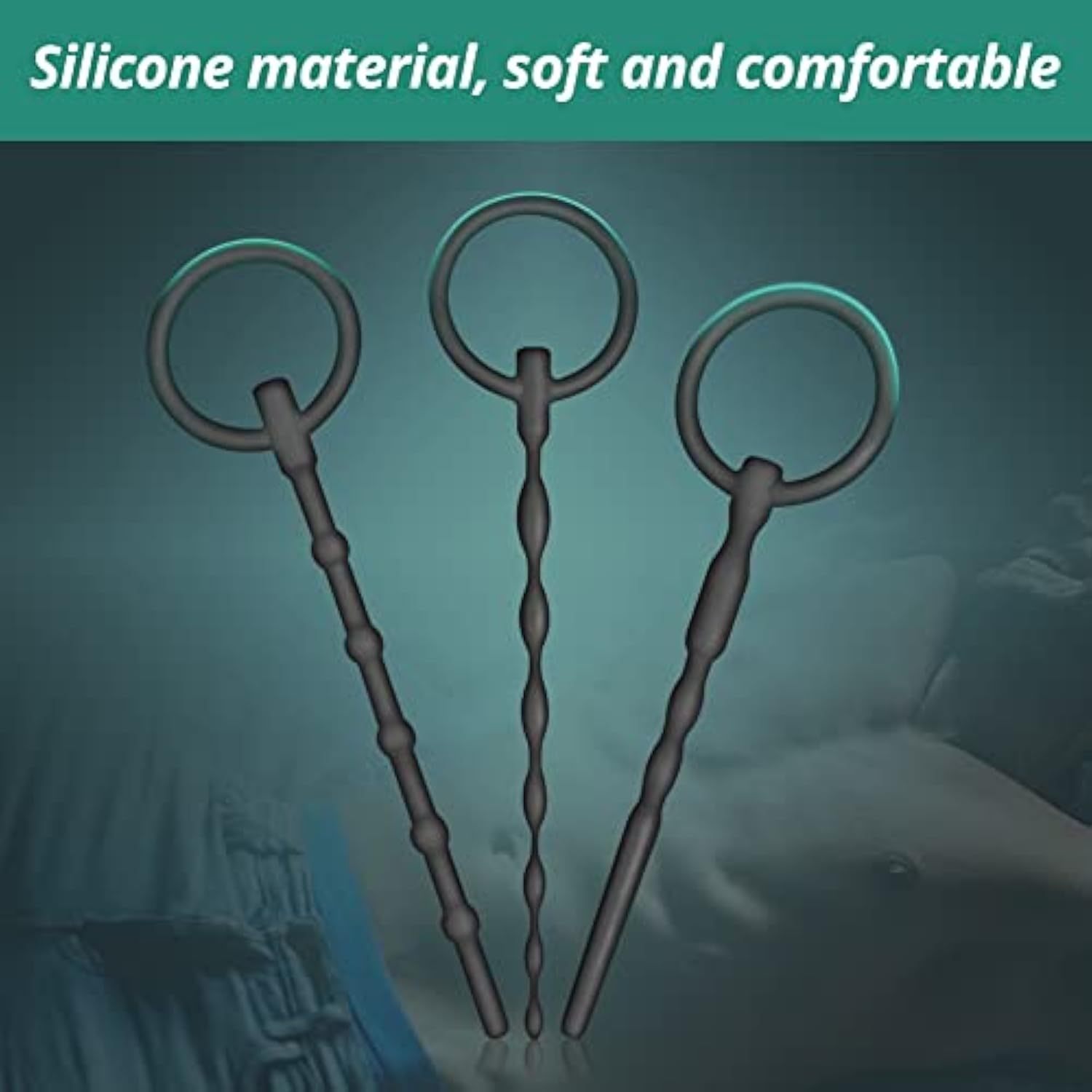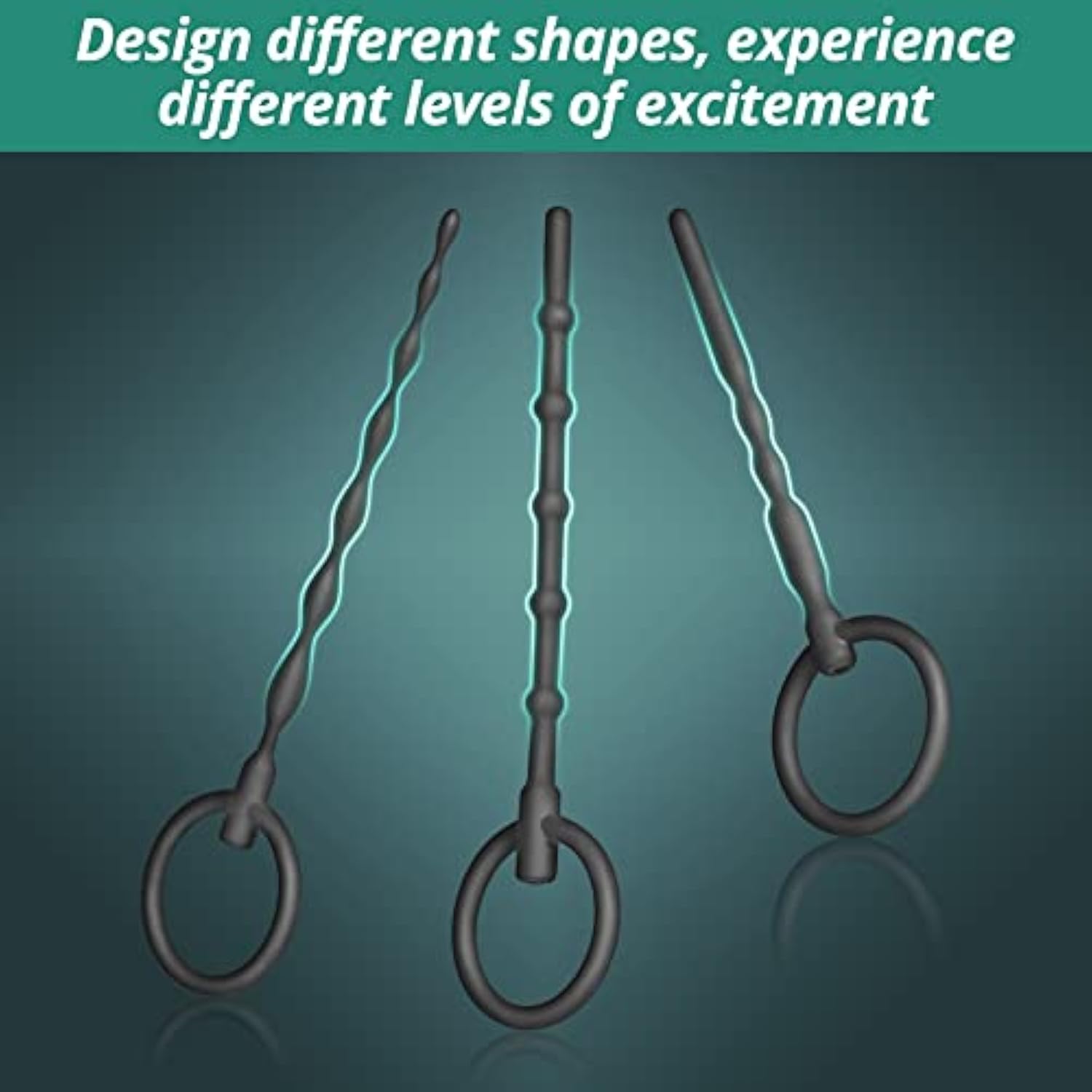 | 3 Pieces Of Urethral Sounds - This Urethral Sounds Set Has Three Pieces, Three Different Sizes, Namely Small, Medium, And Large , Which Can Meet Your Different Levels Of Sex Requirements, Whether You Are A Beginner Or An Expert | | Size Of Urethral Dilator - The Small Length Is 3.74” And The Maximum Diameter Is 0.31”, Suitable For Beginners. The Medium Length Is 4.52” And The Maximum Diameter Is 0.27”. The Large Length Is 4.52” And The Maximum Diameter Is 0.31”, Suitable For Experts | | Ergonomic Design - The Insertion End Of The Penis Plug Is A Tapered Bead Design, So It Can Not Only Slide In Easily, But Also Prevent Pain Or Injury During Insertion. The Hand-Held End Is The O-Ring. The O-Ring Is Easy To Hold, Which Is Convenient For You To Operate And Prevents Over-Insertion | | Multi Beads Urethral - The Rod Of The Silicone Urethral Sound Is Designed With Multi-Beads.When You Use The Sound Of The Urethra To Insert Your Penis, The Beads Will Stimulate Your Sensitive Nerves Along With Your Operation, Rub Your Prostate, And Bring You A Spouting Orgasm | | Silicone Penis Plugs - Our Urethral Dilators Are Made Of Soft, Flexible, Hypoallergenic Silicone To Ensure The Safety And Comfort Of Your Sex Journey. Let The Ergonomic Urethral Rods Insert Into Your Penis, Fill Your Emptiness, And Lead You To Find Fatal Happiness | |