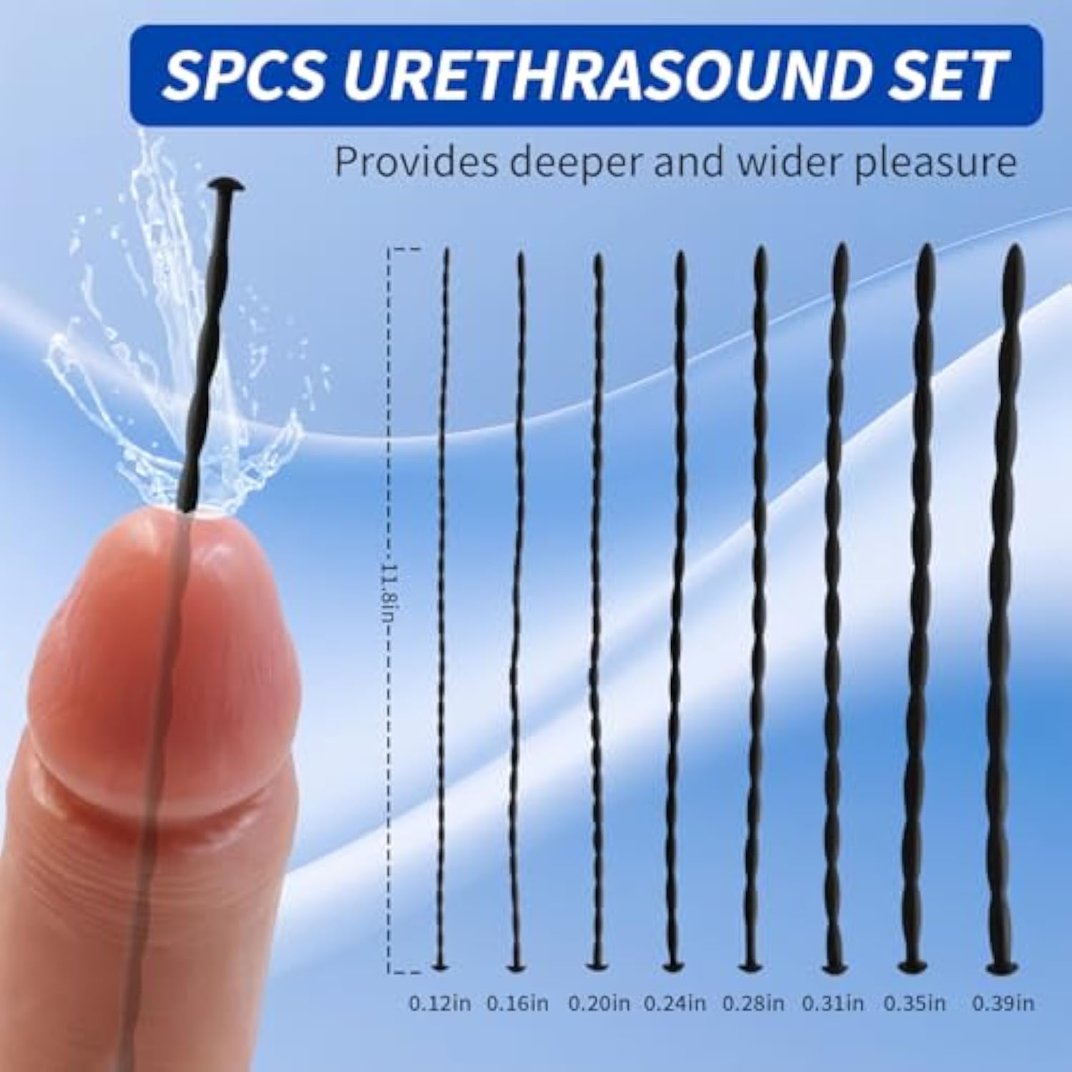 | 8-Piece Graduated Urethral Sounding Kit - Perfect For Beginners To Advancedusers,These 0.12 - 0.39Inch Diametersilicone Urethra Sounds Offer Progressivestretching.The 11.8 Inches Flexible Rods Withtextured Beads Deliver Customized Penisstimulation, Teasing Nerve Endings Forintense Solo Or Partner Play | | Body-Safe Silicone Urethral Dilators-Ultra-Soft Medical-Grade Siliconeensures Smooth Insertion And Prostatestimulation. The Flexible Urethral Plugscontour To Your Anatomy For Comfortabledepth Control, Creating Throbbingpleasure During Exploration. | | Premium Polished Surface Technology-Each Catheter Sound Features Oursmoothest Finish To Reduce Discomfort.The Gliding Silicone Design Allows Deeperpenetration While Awakening Pulsatingsensations With Every Movement. | | Ergonomic Prostate Massager Designspiral Bead Texture Enhances Friction,While The Fared Mushroom Base Ensuressafety. The 11.8" Insertable Lengthdelivers Targeted Stimulation For Bothsolo Masturbation And Couple'S Play | | Discreet Packaging - Yoururethral Training Kit Arrives In Plainpackaging With No Product Markings