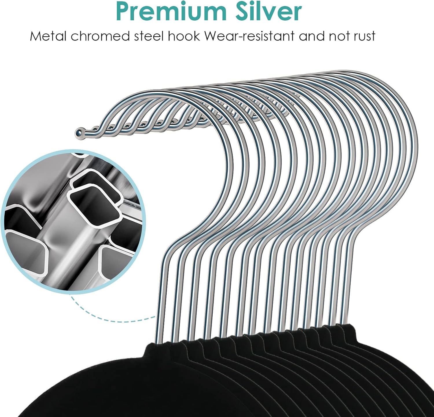Velvet Hangers Non Slip Felt Hangers, 30 Pack Black Velvet Hangers Clothes Hangers Space Saving Slim Hangers with 360 Degree Swivel Hook for Suits Coats, Jackets, Pants, and Dress Clothes