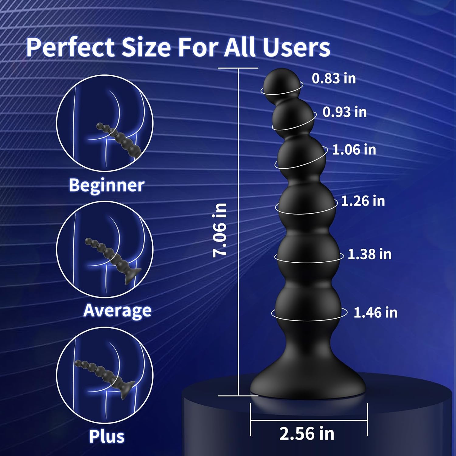 6 Vibrating Anal Beads: This unique anal toy features 6 beads of varying sizes, a curved design for easier insertion, and enhanced penetration for a filling sensation. The round base includes a suction cup, offering secure placement and a reliable grip to avoid any slipping.