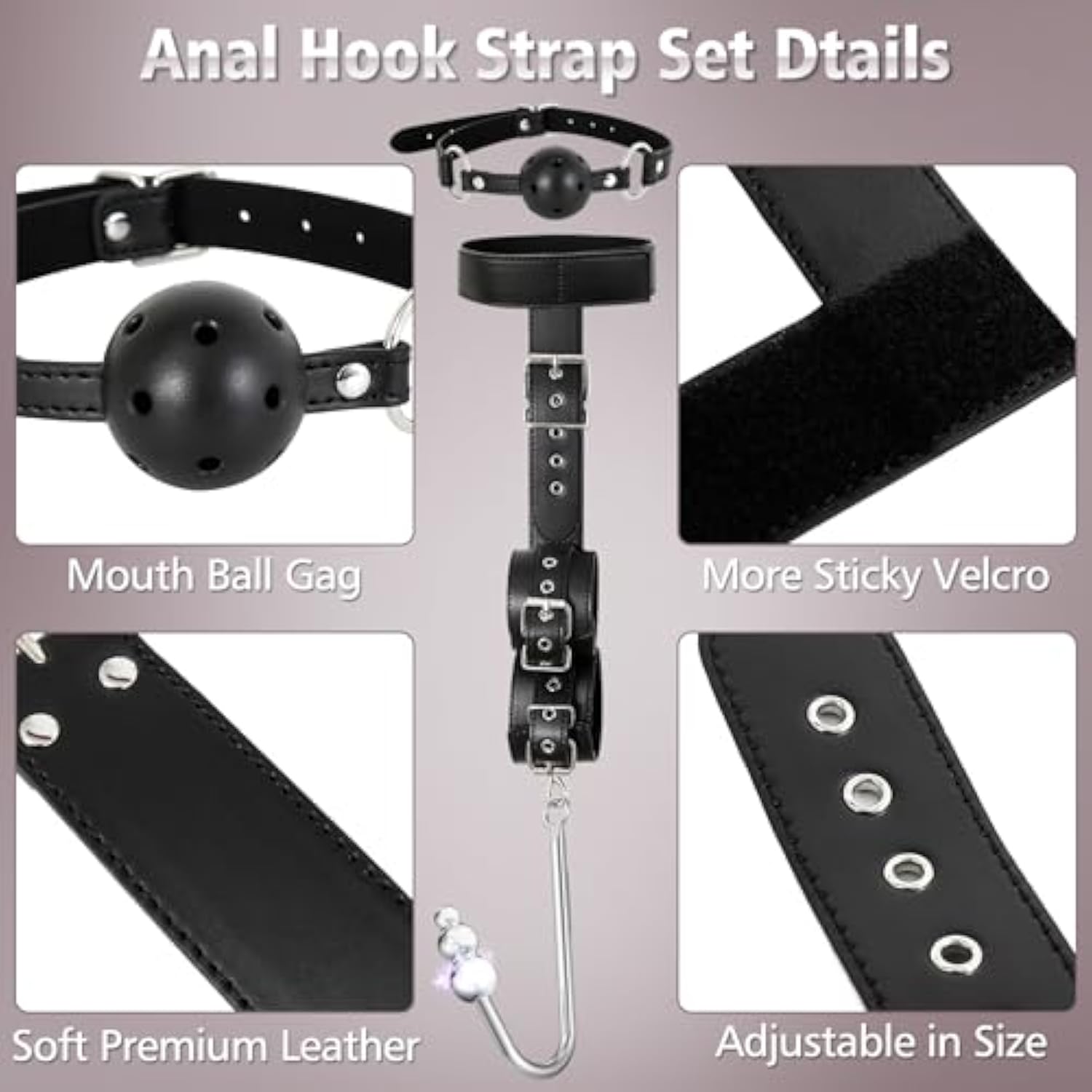 | Slave Love Sex Bondage Set -For Intense Bdsm Exploration And Advanced Predicament Play,These Sm Collar With Cuffs Combo Neck To Wrist Restraints Kit, Vibrating Anal Hook And Mouth Ball Gag. Restrict Your Plaything'S Mobility In A Unique And Attractive Bondage Device That Will Make Them Look And Feel Irresistibly Helpless! Ensures Your Sub Maintains Perfect Posture While Enjoying Profound Anal Or Vaginal Pleasure | | Vibrating Anal Hook -Perfect For Pleasure Or Punishment, The Firm Ball And Curved 15” J Shape Combine To Make Precise G-Spot Or P-Spot Massage A Cinch. Insert Anally Or Vaginally Twist And Turn On The Hook ,Let The 9 Different Kinds Of Vibrating Anal Ball Intense Orgasmic Sensations | | Soft And Comfortable - The Leather Bondage Collar Is Made Of High-Quality Imitation Leather, Which Is Very Soft, Comfortable, Wear-Resistant And Durablefor Long-Term Use With Many Repeats! The Smooth Texture Stainless Steel Anal Hook To Provide Anal Stimulating And Multiple Orgasms | | Adjustable For More Fun - All Accessories Of The Bdsm Kit Can Be Used Together Or Separately.Both The Handcuffs And Restraint Straps Are Adjustable, You Can Adjust It To Your Suitable Size,The Collar And Handcuff Bondage Straps Can Be Use Of Cosplay, Bondage And Discipline, Dominance And Submission. The Anal Ball Will Provide Anal Stimulating And Multiple Orgasms To The Slave | | Breathable Ball Gag Includeed - You Deserve Respect. Your Submissive Deserves Proper Care. Our Premium Garment Leather Ball Gag Will Bring You All Of The Respect That You Deserve From Appreciative Submissives Bound In The Finest Materials | |