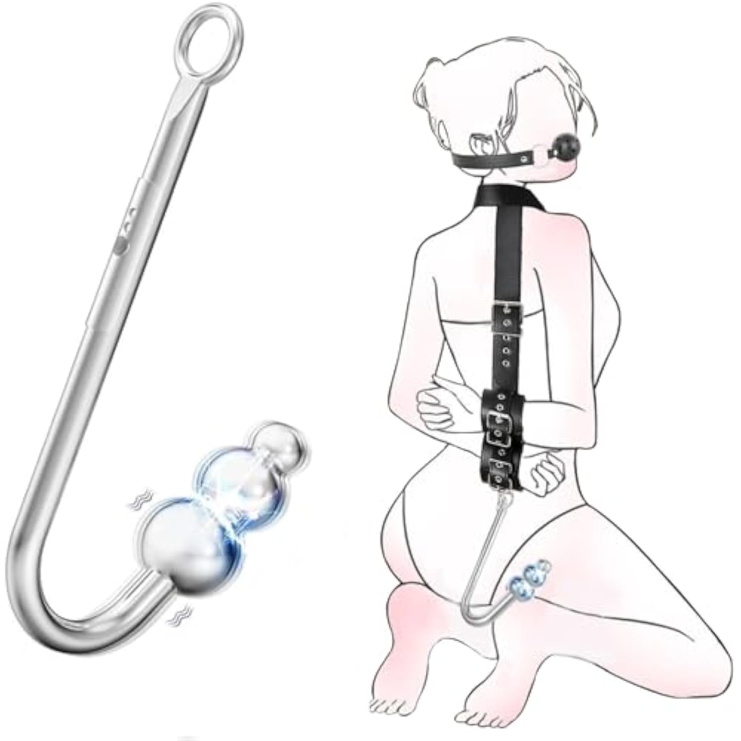Vibrating Anal Hook Bdsm Sex Bondage Restraints With Ball Gag - Neck To Wrist Behind Back Handcuffs Collar With 3 Balls Anal Trainer, Fetish Kinky Adult Sex Toys For Couple Beginner Sm Game Play