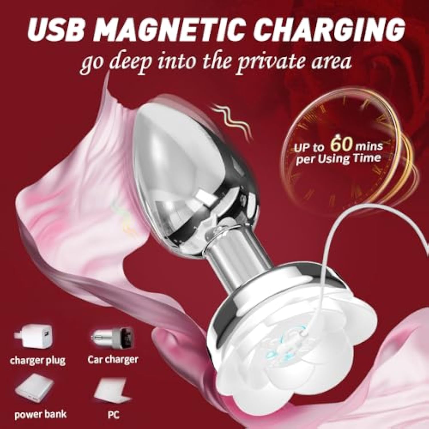 - ?Usb Magnetic Recharging Butt Plug?Our Female Sex Toy Has A Magnetic Rechargeable Design, With A Usb Magnetic Charging Cable, It Adapts To Various Chargers So That This Rose Vibrator Can Be Charged At Any Time. The Anal Plug Vibrators Can Run Up To 60 Minutes Fully Charged Of High-Speed Stimulation. The Male Sex Toy Provide A Remote Control Will Allows You To Enjoy Sex Happy And Adds More Sex Surprises For You And Your Partner.Sex Toy For Men