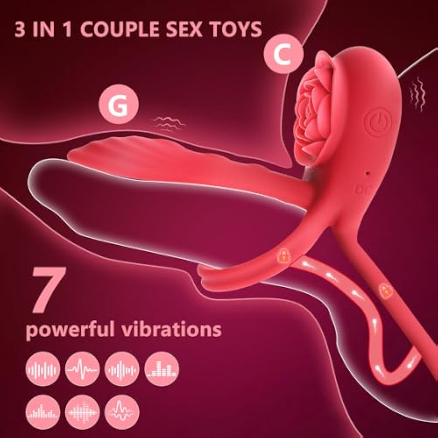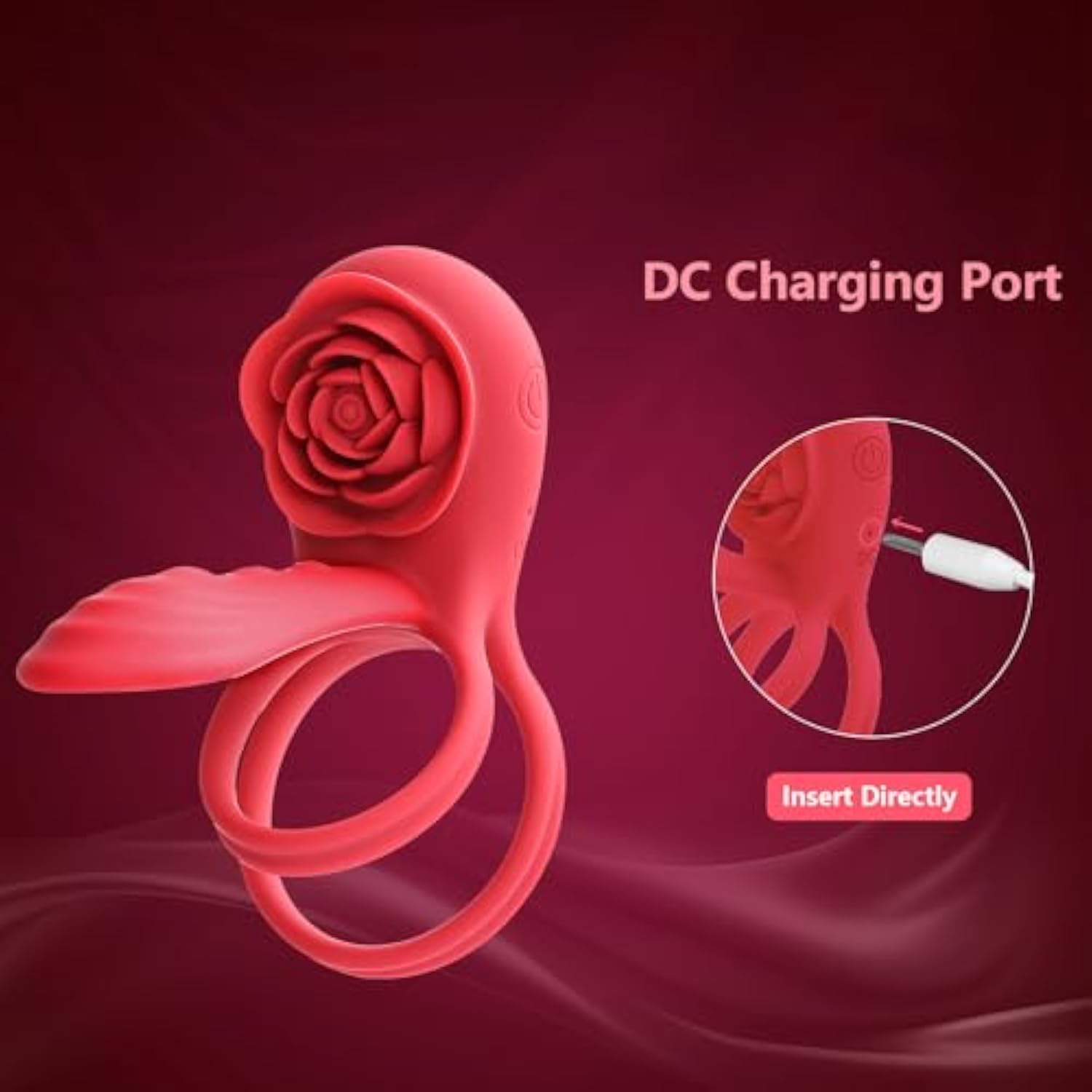 - 2-In-1 Layered Stimulation - 2 In 1 Rose Shaped Couple Vibrating Cock Ring For Layered Stimulation, The Vibrating Cock Ring Wraps Securely Around The Penis Shaft And Perineum, Creating A Wide Range Of Sensations Inside The Body, Enter Into A New Sexual Pleasure, Giving Couples The Ultimate Experience