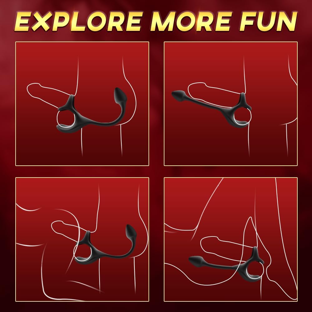4-in-1 Vibrating Cock Ring & Anal Plug with Prostate Massager, Remote Control.