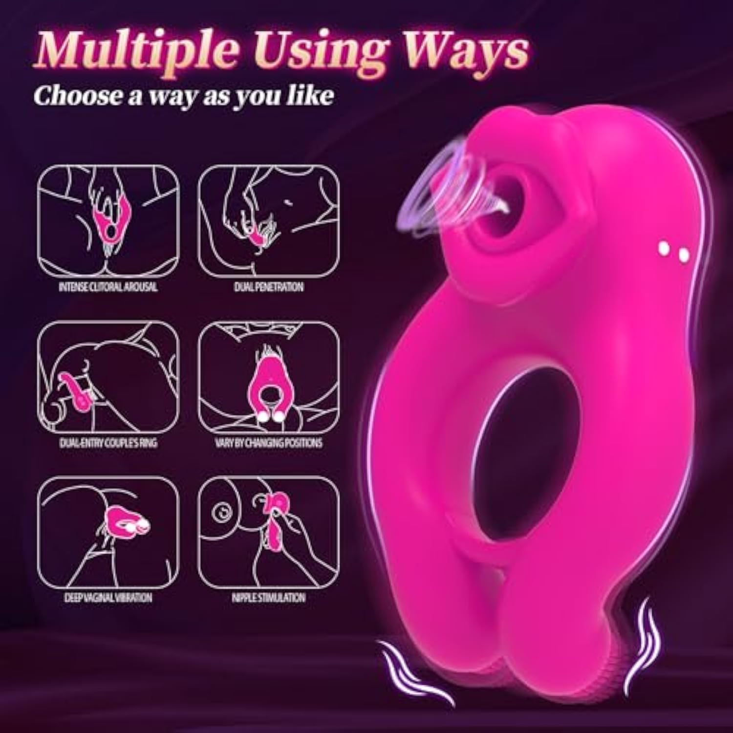 - 7 Intense Vibration:This Innovative Penis Ring Vibrator Features 7 Modes To Suit Every Preference. It Ranging From Weak To Strong, Providing A Wonderful Vibration That Spreads From The Center Of The Sucking Vibrator To The Cock Ring. Delivering An Unforgettable Experience With This Unique Cock Ring For Men.