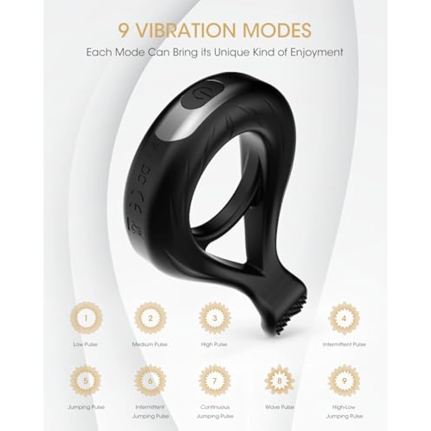 Vibrating Cock Ring Sex Toys For Men Couple, Flexible Silicone Penis Ring Vibrator With 9 Powerful Settings For Clitoris & Testicles Stimulation, Male Adult Sex Toys