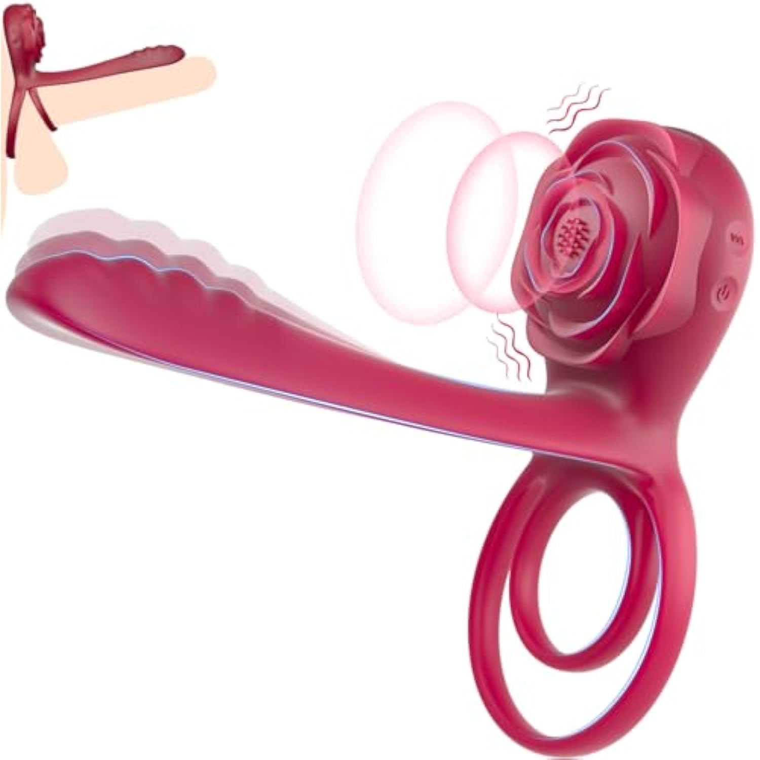 Vibrating Cock Ring With Rose Clitoral Stimulator G Spot Vibrator, Sex Toy 3 In 1 Penis Ring Vibrator With 10 Vibration Modes, Couples Adult Sex Toys For Men For Erection Enhancing Pleasure