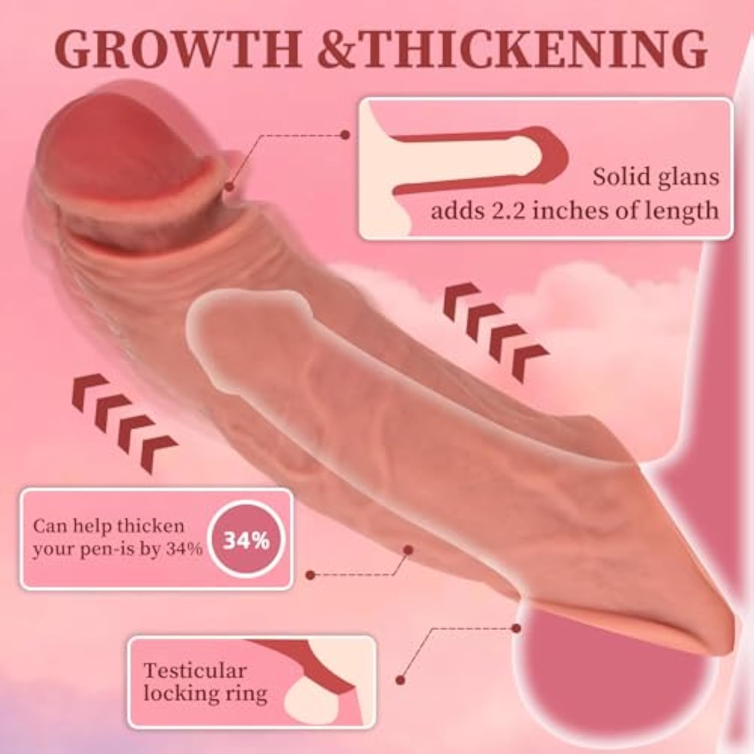 | ??Add Some Power To Your Pleasure With Our 10-Speed Vibrating Pennis Sleeve With Cock Ring?:Those Who Want A Little Extra Punch To Their Pleasure, Our 10-Speed Vibrating Cock Rings And Male Vibrators Are Just What You Need. With Multiple Speeds Controlled By A Remote, You Can Find The Perfect Level Of Stimulation For You Or Your Partner. | | ??Expand Length And Unique Design?: Wearing Our Penis Sleeve Will Make You More Confident. It Will Help You To Add About 2.2 Inches And More Girths. Our Penis Sleeve Comes With A Ring With Sperm Locking Feature Underneath. It Has Our Exclusive Design Texture Around It. It Will Wrap Around Your Penis, It Can Be Used As A Condom Or As A Penis Extender. | | ??True To The Naked Eye?: The Fascinating Thing About The Penis Extension Sleeve Is Its Remarkable Realistic Appearance, With A Detailed Glans And All The Veins, The Texture That A Real Penis Has. Even The Colors Are Vividly Replicated To Provide You With The Most Natural Experience. | | ??Body-Safe Silicone Materials?: This Penis Extension Sheath Is Made Of Body-Safe Liquid Silicone, Skin Friendly And Phthalate Free, And Has Enough Stretch To Accommodate A Variety Of D’S. Let You Feel Comfortable When Playing With Your Partner, Reusable, Safe And Reliable. | | ??Easy To Use Clean Couples Sex Toys?: The Cock Sleeve Is 100% Waterproof And Easy To Use And Clean. Add A Little Lube To Yourself And Insert Your Penis Shaft Into This Penis Sleeve’S Hollow Inner Chamber. | |