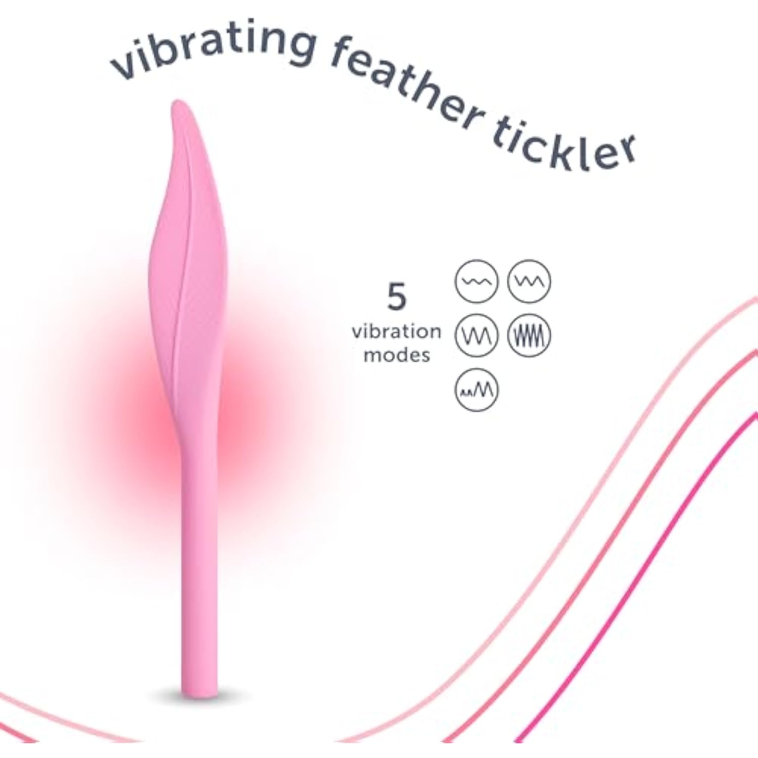 Vibrating Feather Tickler With Silk Sash, 5 Vibration Settings, Body-Safe Silicone, Fully Waterproof, And Usb Rechargeable
