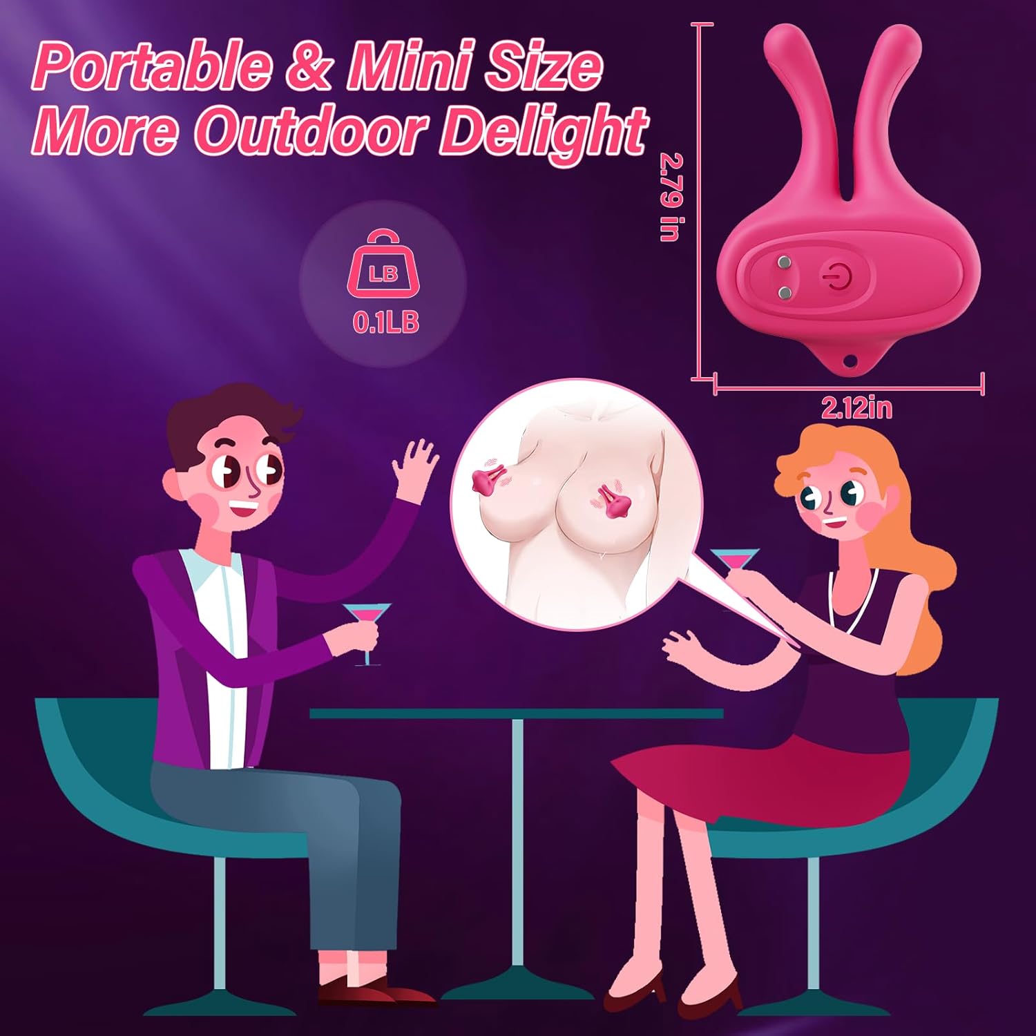 [Portable Mini Rabbit Vibrators]: This compact and lightweight nipple stimulator features a rabbit design, making it discreet and portable. It operates quietly (under 40dB), so it's ideal for travel or use during romantic dates. The stretchy material ensures it fits various nipple sizes, providing an exciting experience for everyone.