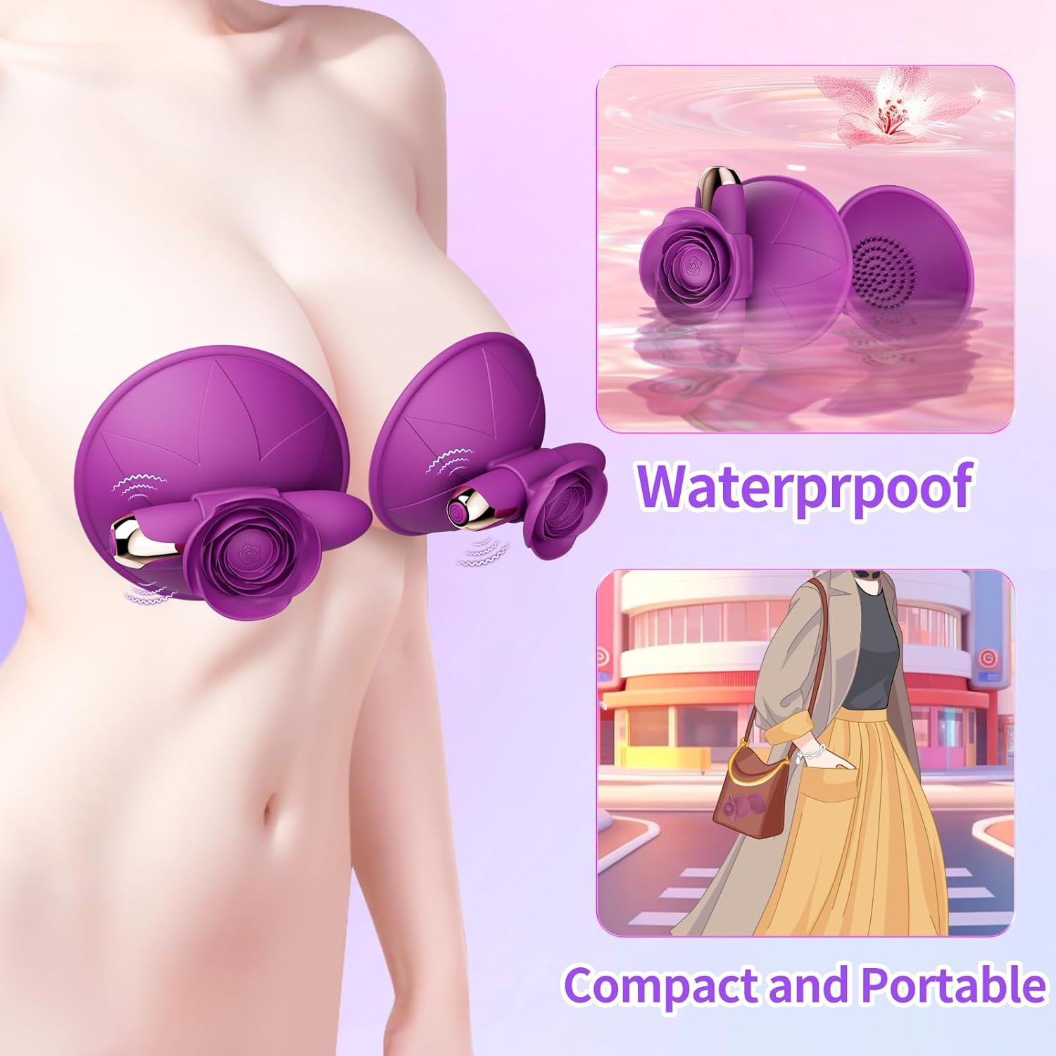Nipple Stimulator with 10 Vibration Modes: This rose-shaped vibrator is designed to enhance your intimate moments with its powerful vibration modes. Offering 10 adjustable intensities, it stimulates your nipples, creating a range of sensations from gentle to intense. Perfect for prolonging foreplay or adding a playful twist to your intimate time with a partner. The discreet sound ensures privacy while in use.