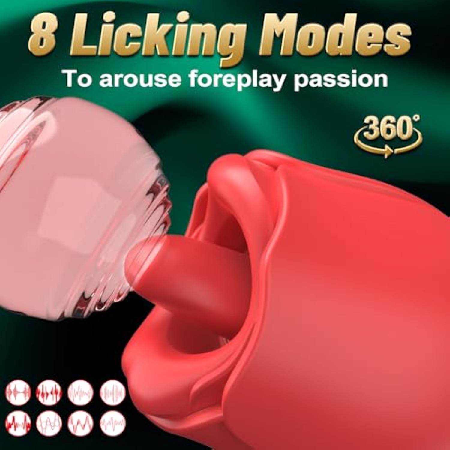 Vibrator Adult Sex Toys For Woman - Rose Sex Toy With 360° Rotated Licking Tongue, Female Sex Toys With Handle, Adult Toys For Women With 8 Licking Modes, Nipple Toys Vibrators Clitoral Stimulator
