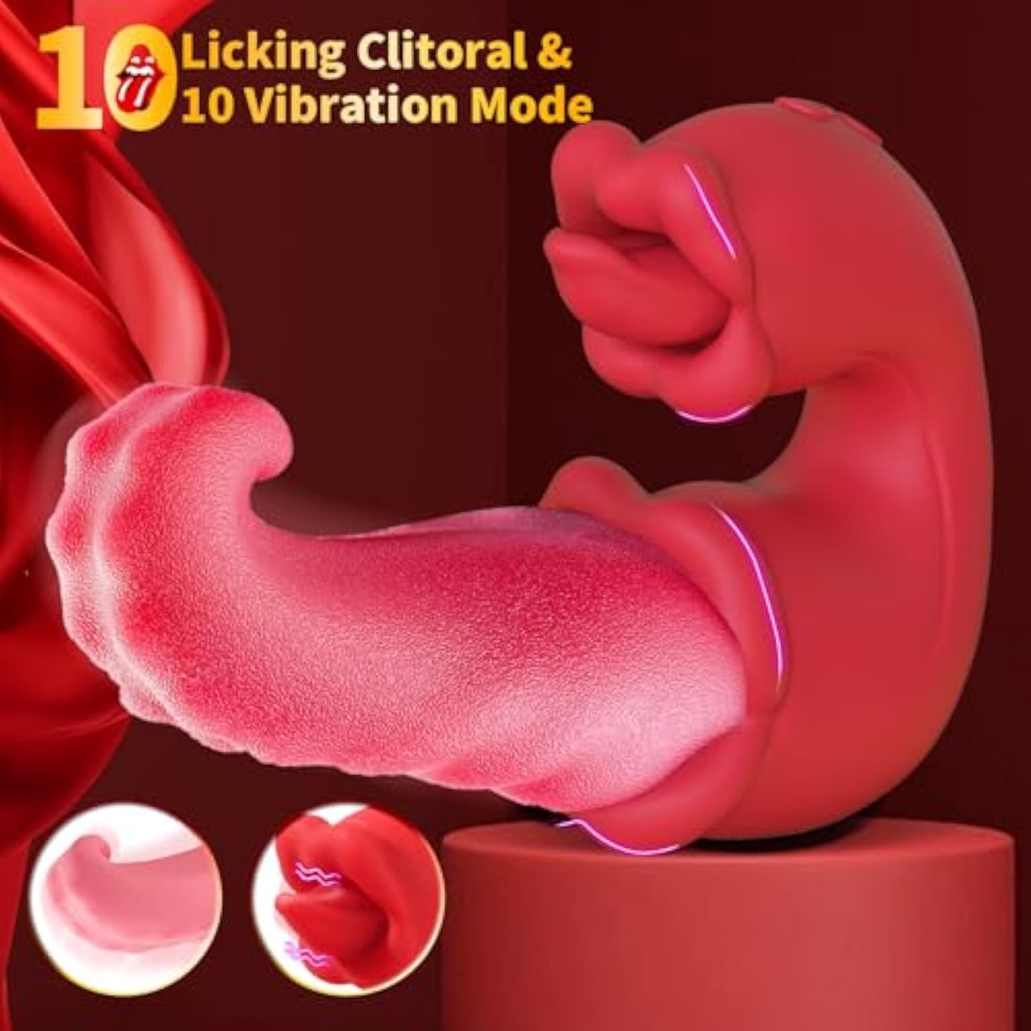 Vibrator Adult Sex Toys For Women - 4 In 1 Tongue Thrusting Vibrators Dildo Rose Sex Toys With 10 Licking Clitoral & 10 Vibration Mode, G Spot Clit Stimulator Tongue Toy For Women Couples Games