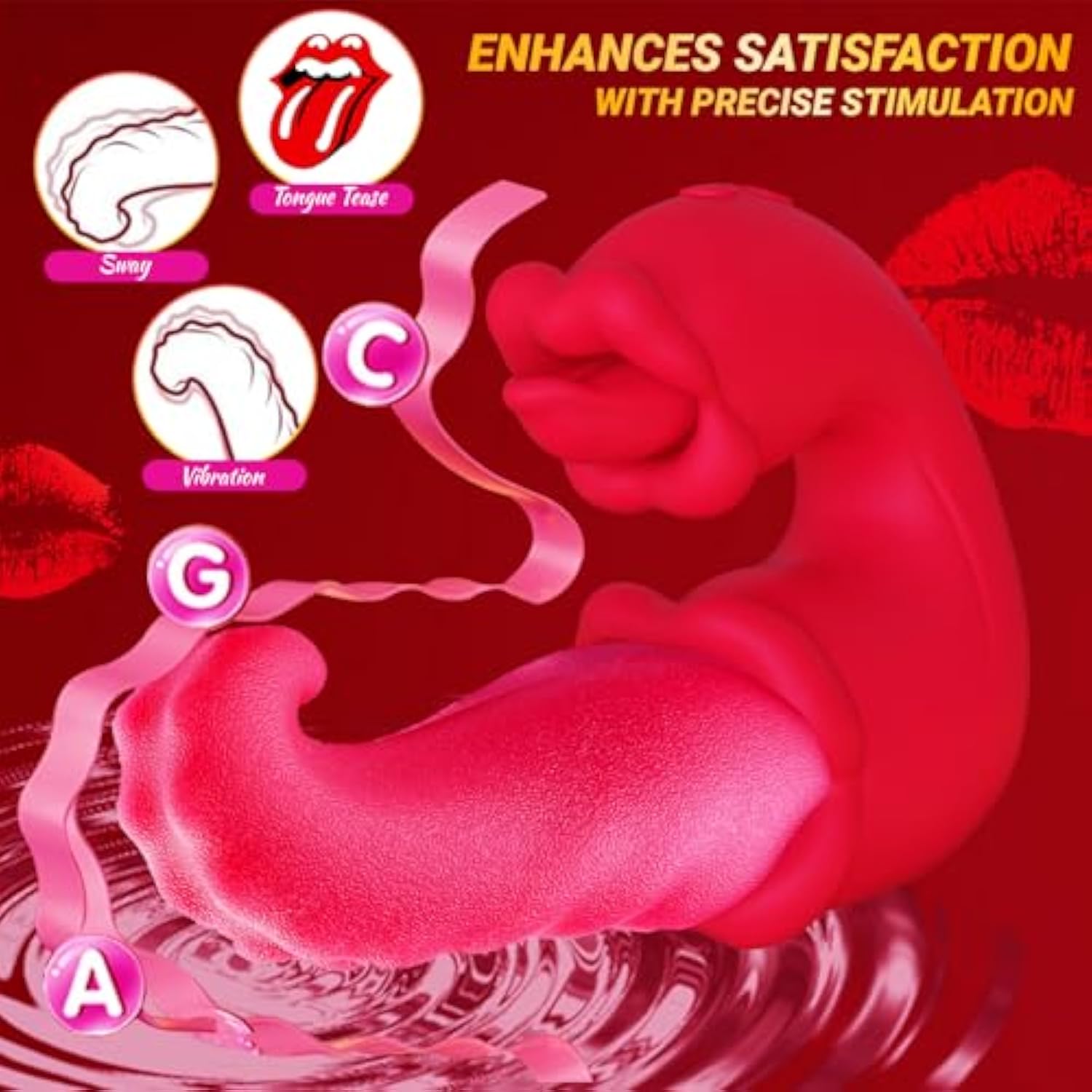 - 10 Modes Tongue G-Spot Vibrator Sex Toys - The Mouth And Tongue Are Standout Features Of This Rose Toy. Unlike Other Female Sex Toys Or Dildos, It Doesn'T Just Simulate Tongue Licking; It Imitates The Realistic Action Of Lips And Tongue Licking And Swirling. Offering Multiple Sensations, This Sucking Vibrator Provides Triple Stimulation From Inside And Out.